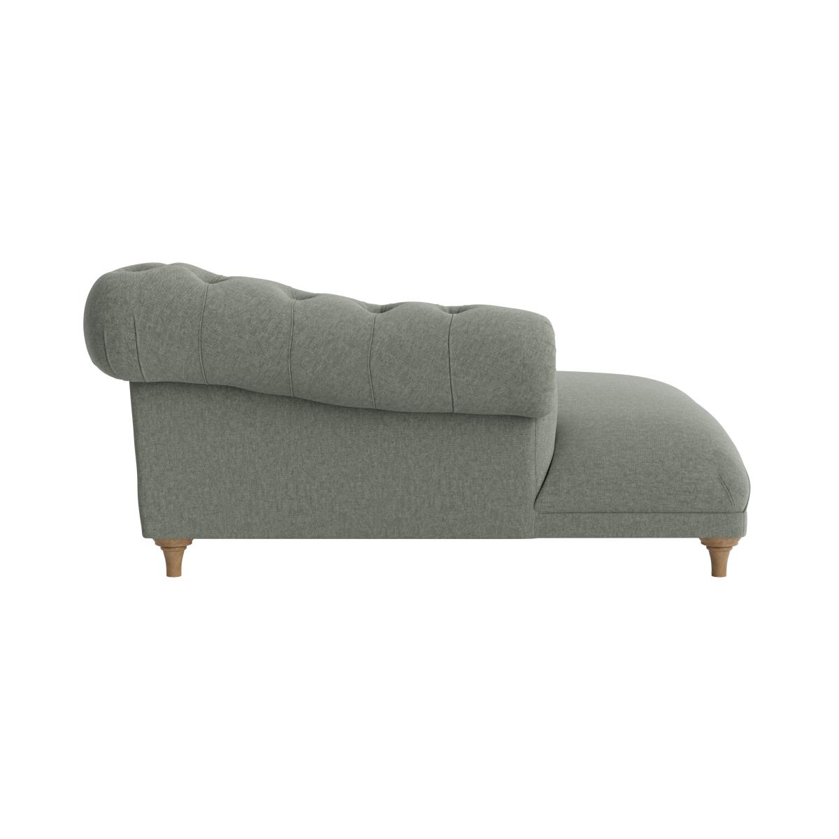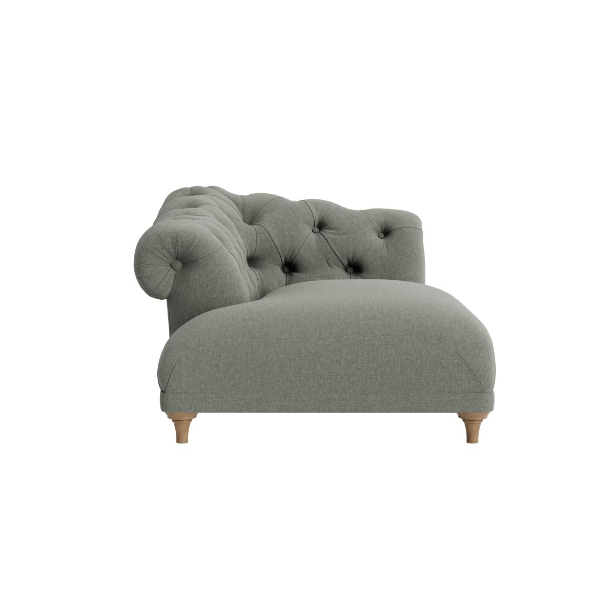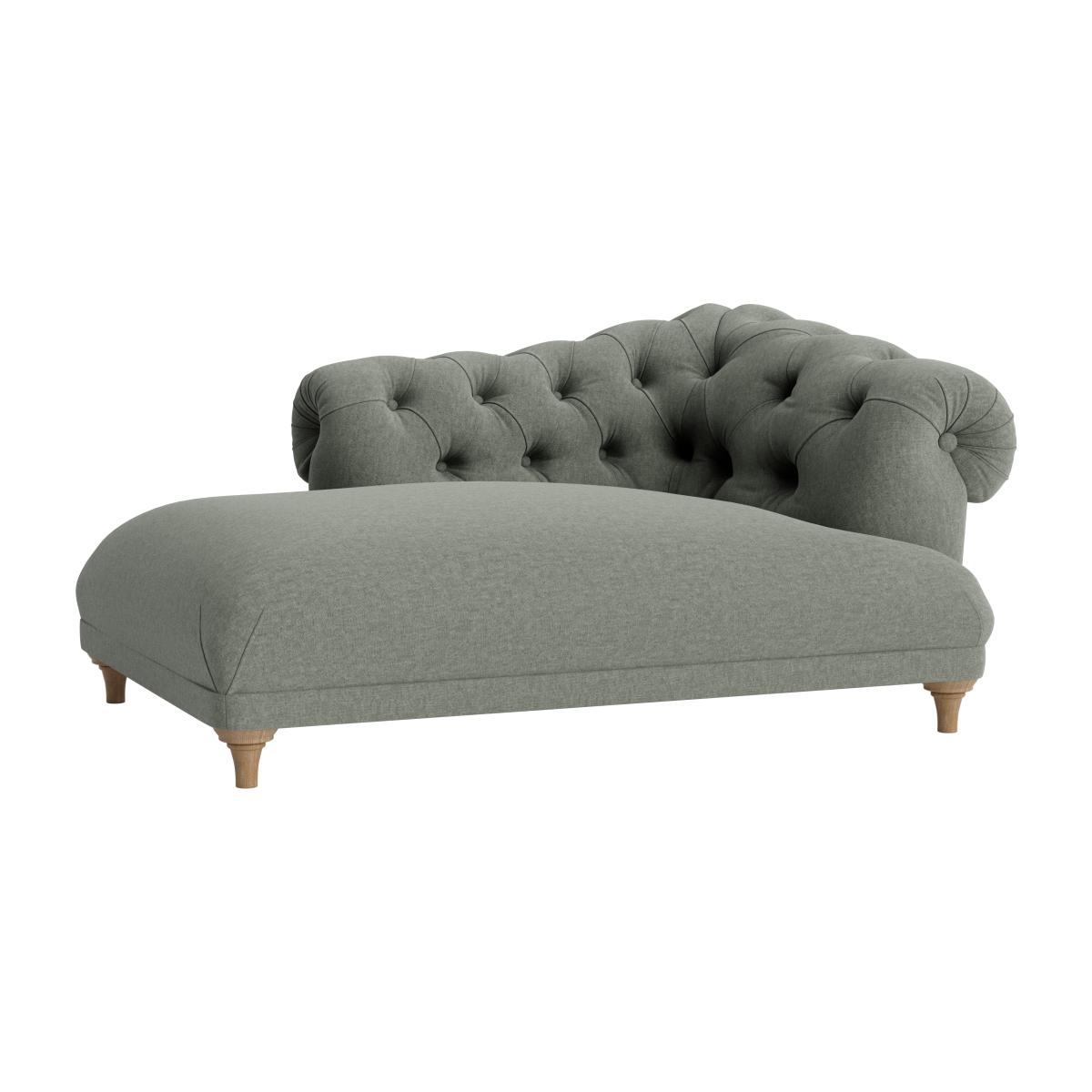 I love this chaise for its bold yet versatile aesthetic, making it a real statement piece in both traditional and modern interiors. Its tufted back and elegant shape lend a touch of sophistication, while the soft, muted colour allows it to complement various colour schemes. It works well in cosy living rooms, reading nooks, or even as a stylish accent in a bedroom. For styling tips, consider pairing it with textured cushions or a patterned throw to add visual interest, and keep surrounding furniture low-profile to highlight its striking profile. Its practical size makes it perfect for creating inviting, comfortable zones without overcrowding your space.