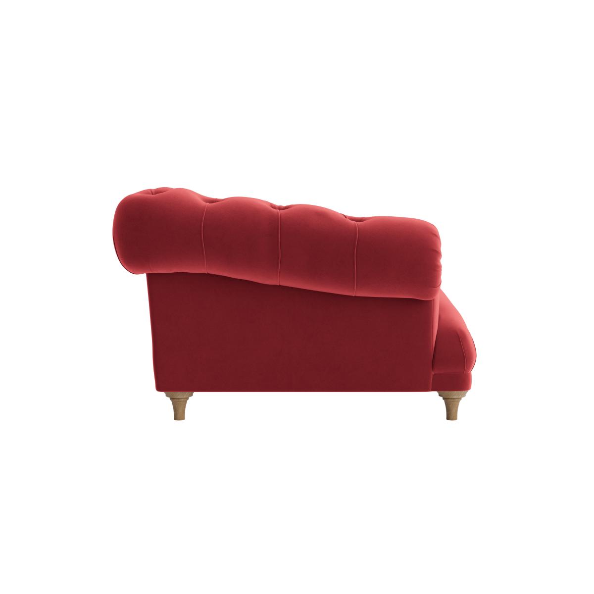I love this piece because it combines classic elegance with a touch of playful personality, thanks to its bold colour and tufted design. It works beautifully in eclectic, vintage-inspired, or even modern interiors that embrace colour and texture. To style it effectively, consider pairing it with neutral or complementary tones in the surrounding furniture to let it stand out as a statement. Practical tips include balancing its boldness with understated lighting and accessories, like a simple side table or a soft throw, to create a cosy yet stylish spot for lounging. Its versatile shape makes it suitable for both larger living rooms and more relaxed, informal spaces.