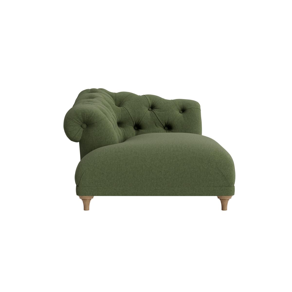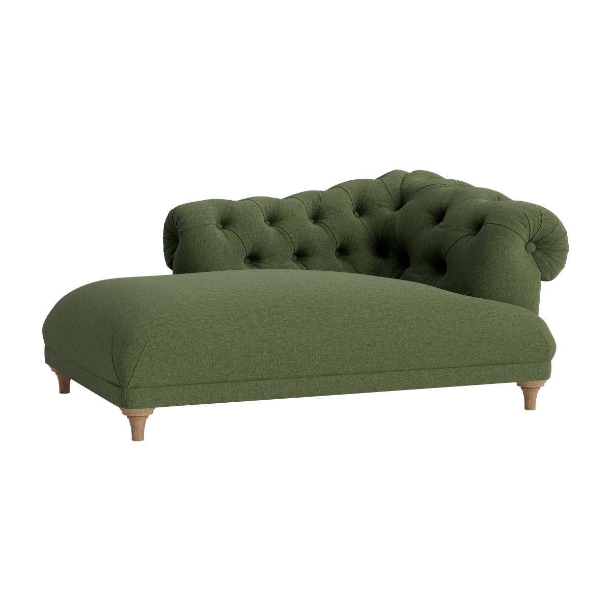 I love the Fats chaise for its classic yet versatile design, which works beautifully as a statement piece or a cosy retreat within various interiors. Its tufted back offers a sophisticated touch, making it suitable for traditional or eclectic spaces, while the rich green upholstery adds a pop of colour that can elevate a neutral palette. When styling, consider placing it in a corner of a living room or bedroom to create a inviting lounge spot. Pair with soft cushions, layered textures, and a cosy throw to enhance comfort, or keep it minimalist for a clean, contemporary look. Its practical size allows for flexible placement, making it a great addition whether you’re aiming for vintage charm or modern elegance.