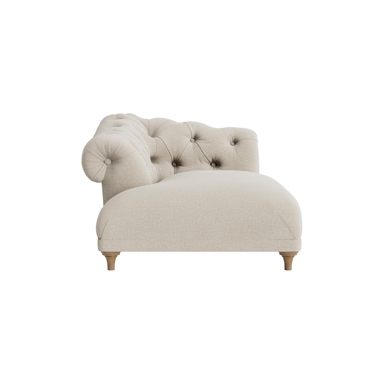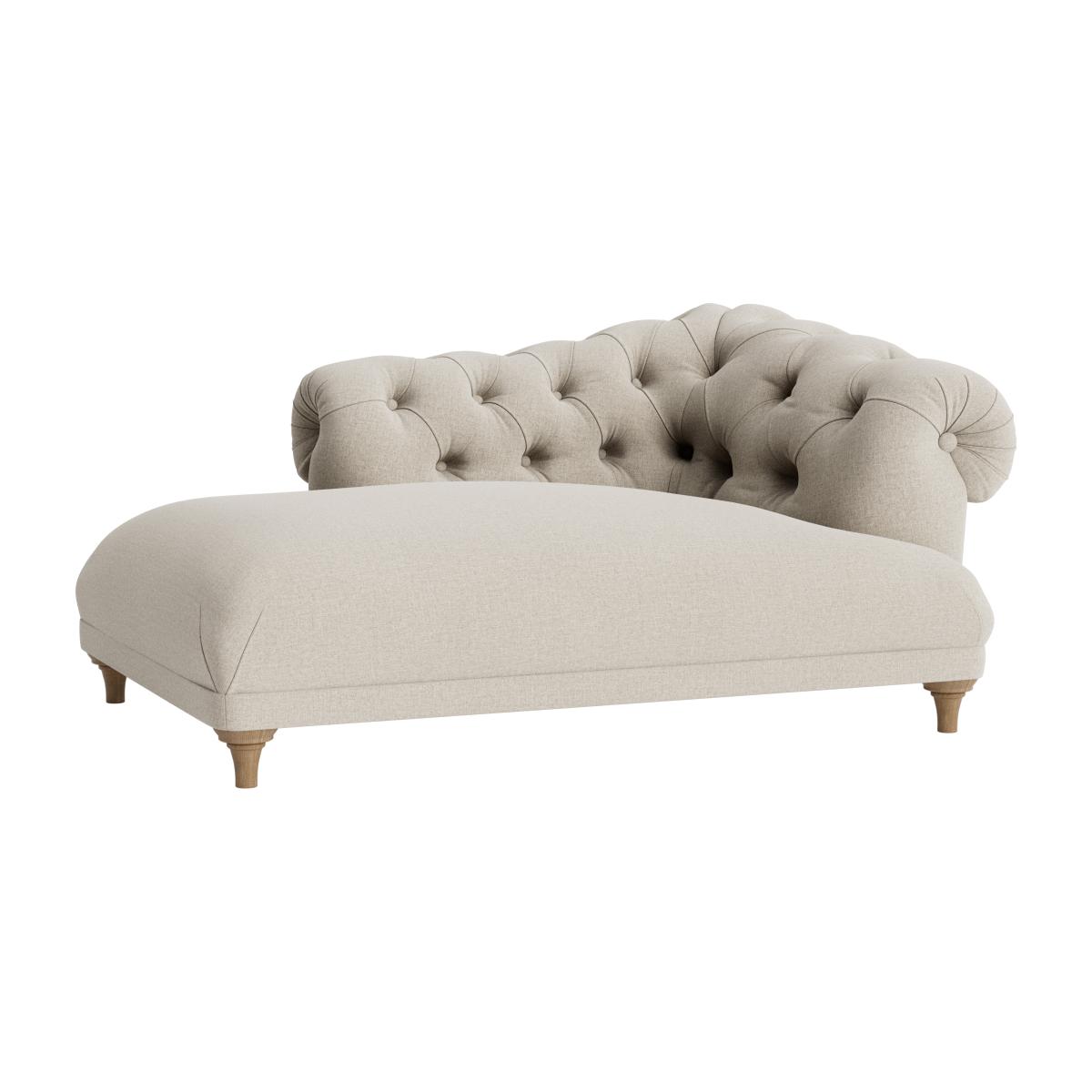 This Fats chaise is a versatile piece that lends itself well to both classic and contemporary interiors. I love its elegant, tufted back which adds a touch of sophistication, while its relaxed form makes it perfect for lounging. It's especially effective in neutral or soft colour schemes, creating a calm and inviting corner in living rooms or bedrooms. For styling tips, pair it with a couple of low side tables and plush cushions for added comfort. It works particularly well in eclectic spaces when mixed with vintage lamps, or in minimalist settings when kept simple with sleek surroundings. Its manageable size makes it adaptable, whether placed next to a window, in a reading nook, or as a statement piece in a more open plan layout.