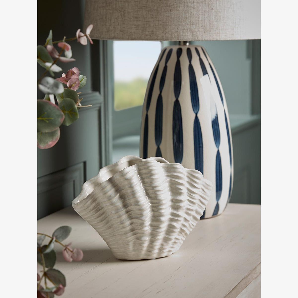 Add a touch of sea side serenity to your home with our Faux Clam Vase. Glazed in a gentle white, the textured detailing on this vase is enhanced, creating a unique vase that works as a standalone piece, or for you to display a lovely bouquet.