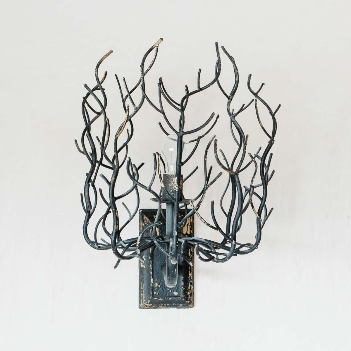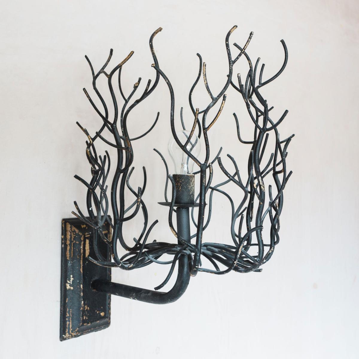 A deep-sea inspired wall sconce crafted from iron with an antique finish, add a vintage style bulb for a fun way to experiment with your lighting arrangement.