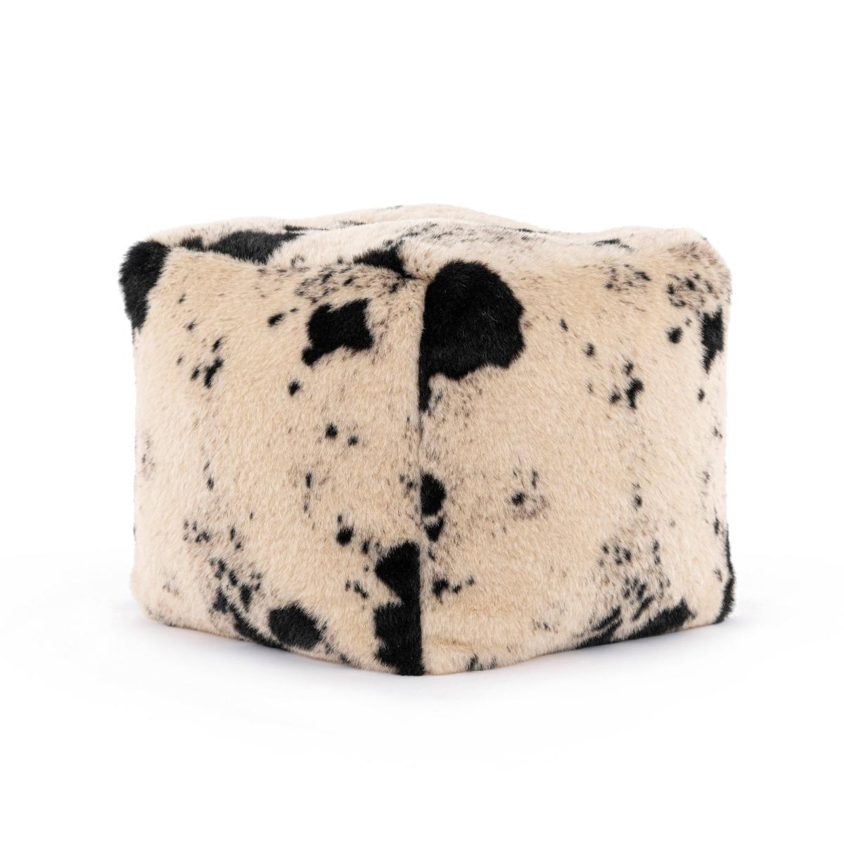 Sit back and put your feet up with our faux cow hide cube. The stylish cowhide cube in black is the perfect addition to any décor. Luxuriously soft to touch, lightweight and durable, use the cube as additional seating, a footstool or a side table to rest your tray on. Other coordinating items available.
