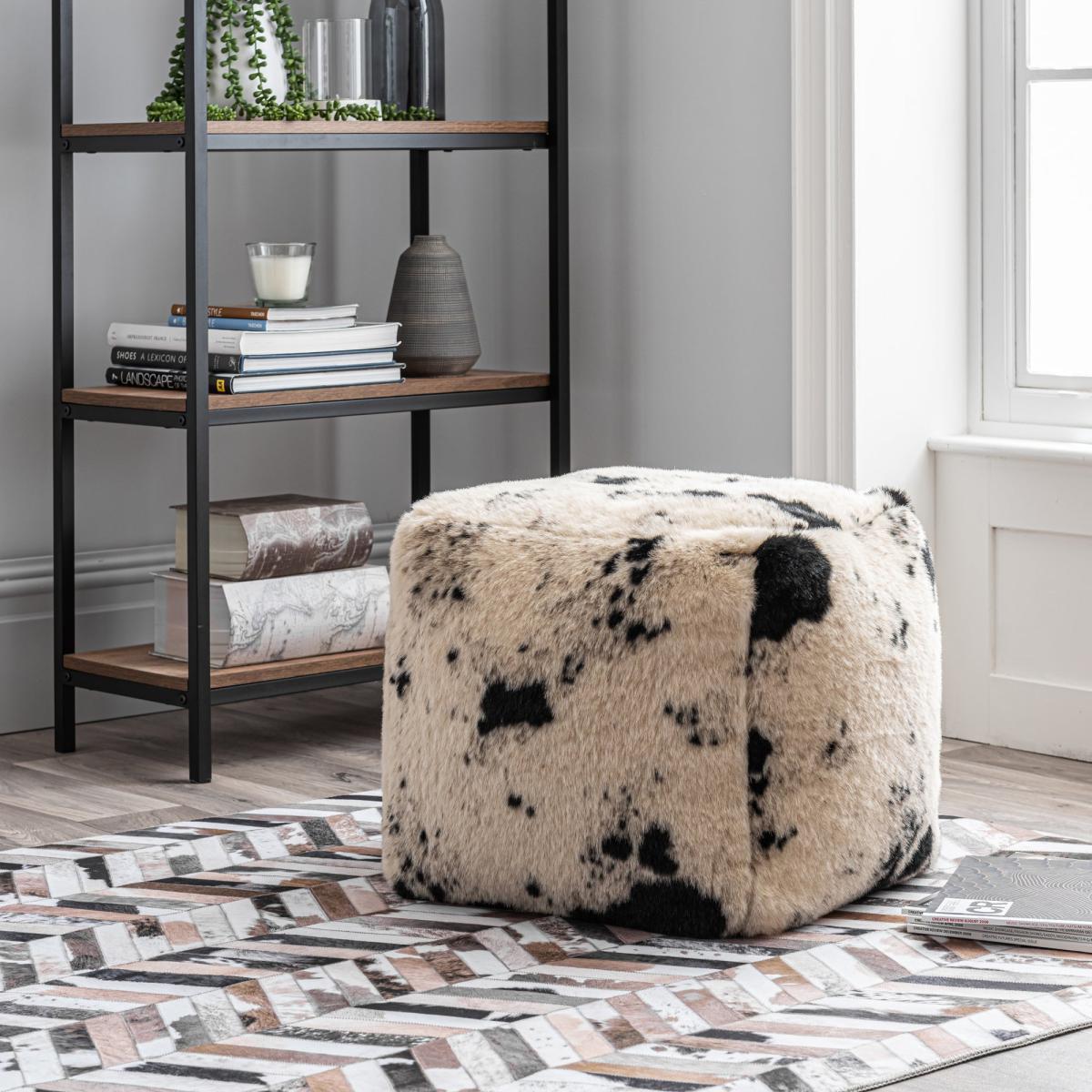 I love this faux cow hide cube for its versatility and tactile appeal. Its black and white pattern makes it a chic, timeless addition that works well in industrial, modern, or eclectic interiors. It's perfect as an extra seat, footstool, or even a statement piece in a reading nook or lounge. To style it effectively, consider pairing it with neutral-toned furniture to let the pattern stand out, or place it alongside other textured materials like velvet or leather for an inviting look. Since it’s faux, it’s also a practical choice for easier maintenance and ethical considerations. Overall, it’s a functional yet stylish piece that can add visual interest to a range of schemes.