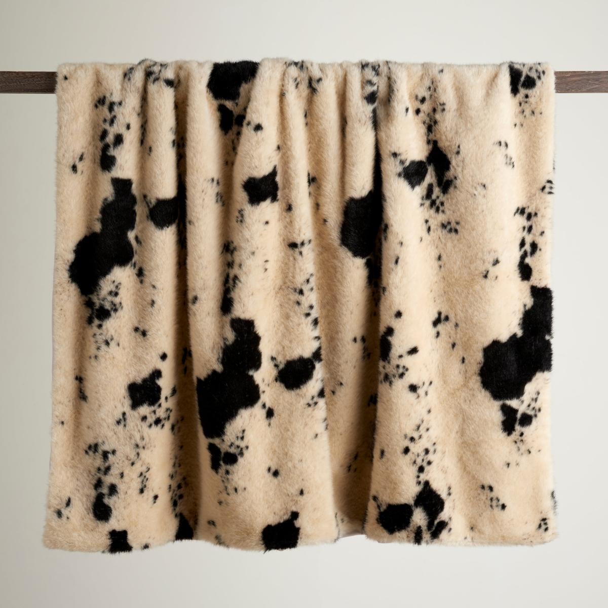 Designed with a modern faux cow hide pattern, this soft throw is made from 45% modacrylic and 55% polyester, perfect for adding texture to any room of the house. The ultra soft feel and modern colourway will complement an array of home decors beautifully.