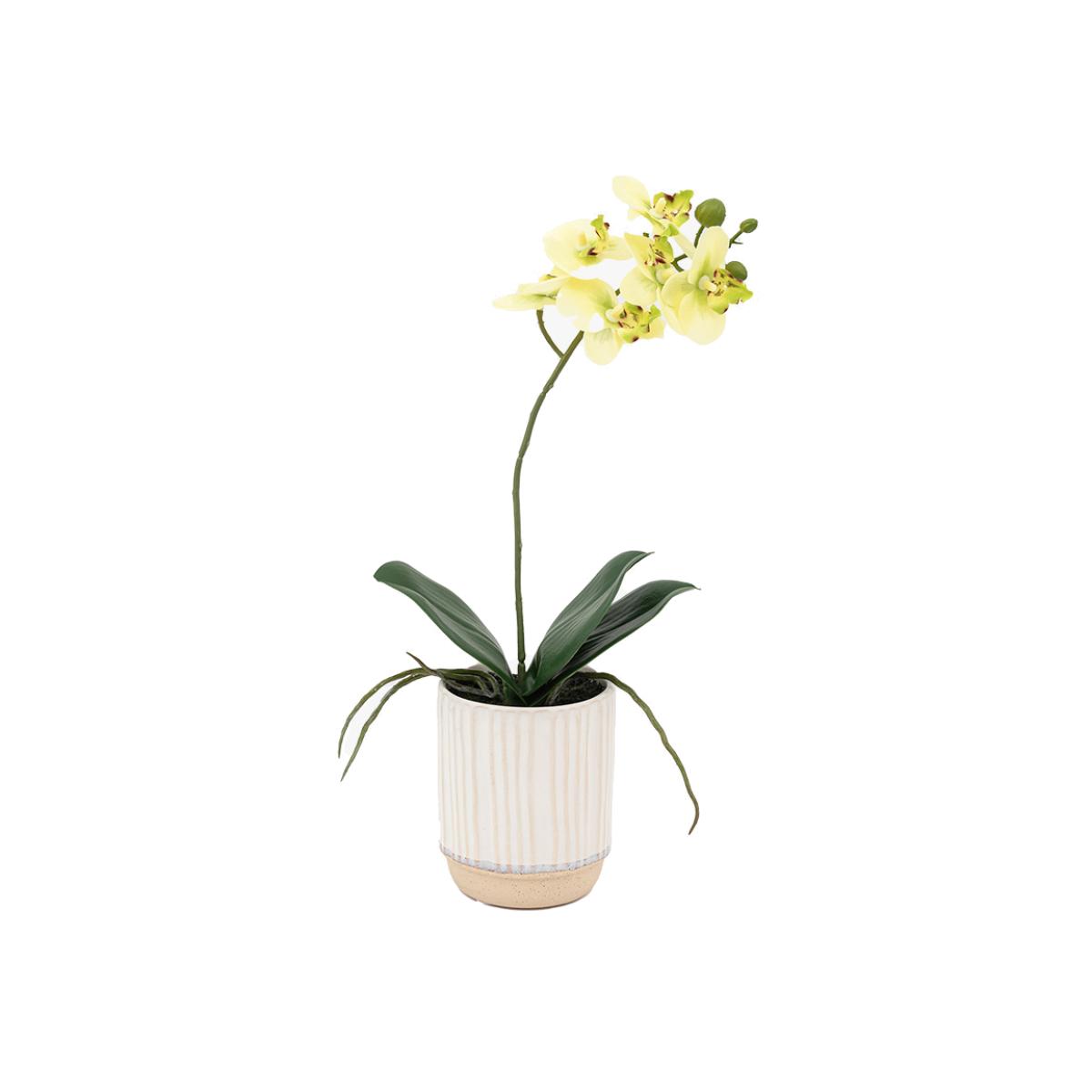 I really like the faux cream orchid in the ribbed pot because it offers a sophisticated yet low-maintenance touch of nature to any space. It works particularly well in contemporary or minimalist interiors due to its clean lines and neutral colour palette. For styling, try placing it on a kitchen windowsill, sideboard, or desk to add a soft natural element without the fuss of real flowers. To enhance its appeal, consider grouping it with other neutral or textured decorative objects or placing it in a slightly taller, decorative stand to create visual interest. It’s perfect for brightening up spaces that need a bit of botanical charm without the upkeep.