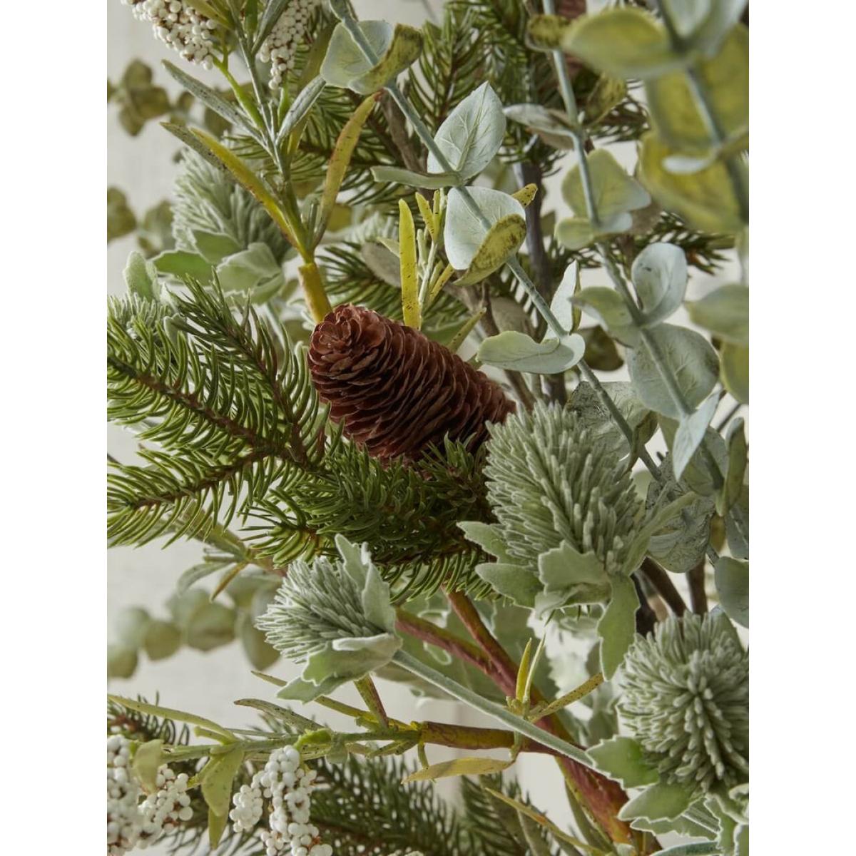 A magnificent bouquet creating all the wintery feels with a beautifully serene tone. Faux eucalyptus combines with faux pine cones, white berries, pussy willow and thistle creating an abundance of interest and texture in your vase.