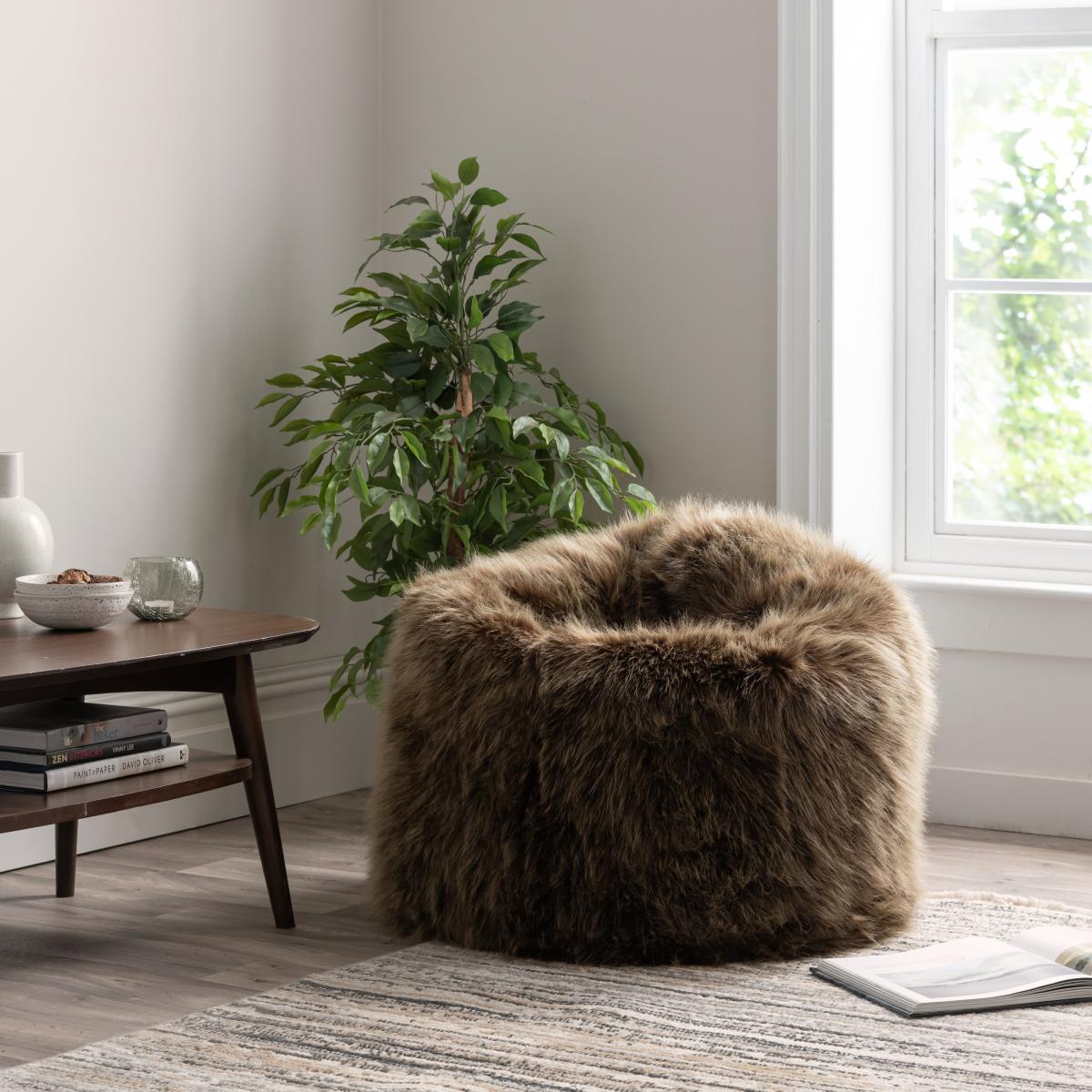 This indulgently soft faux fur bean bag with its luxurious and cosy looks will make a stylish addition to your home. The varying shades of brown on each fibre lend this faux fur depth and almost natural beauty. Finished with a non-slip base made from a durable non-woven, the bean bag is generously filled with polybeads providing comfortable seating and support at the same time.