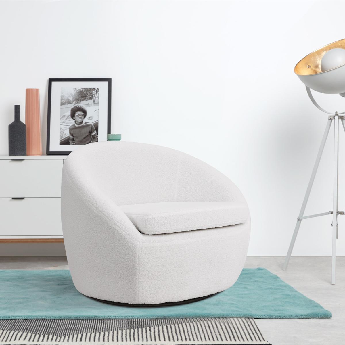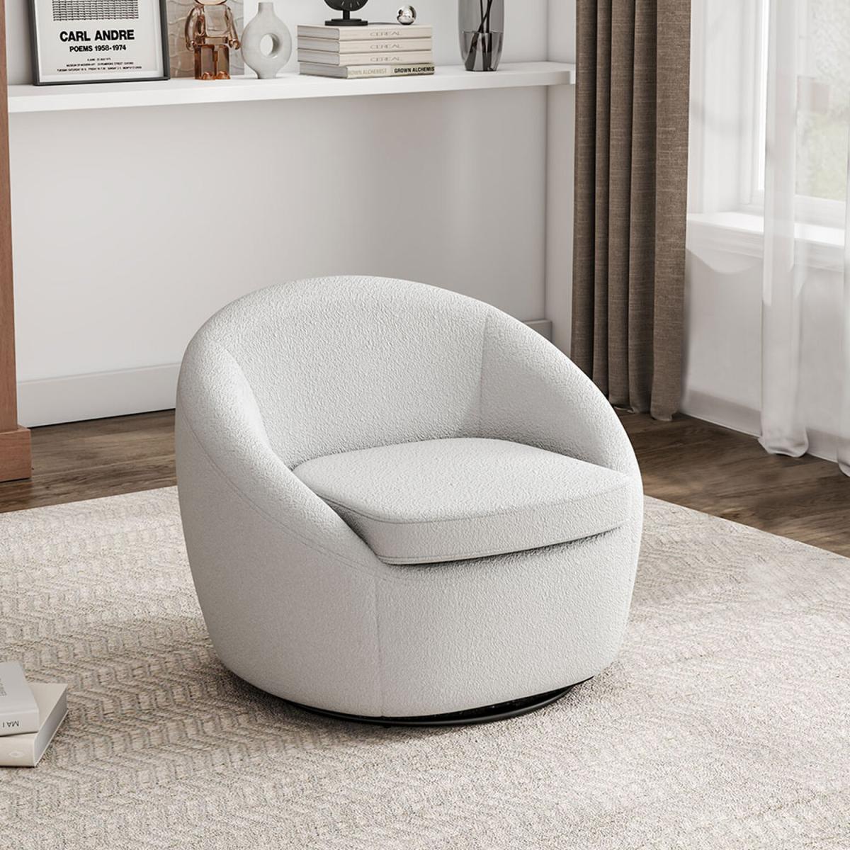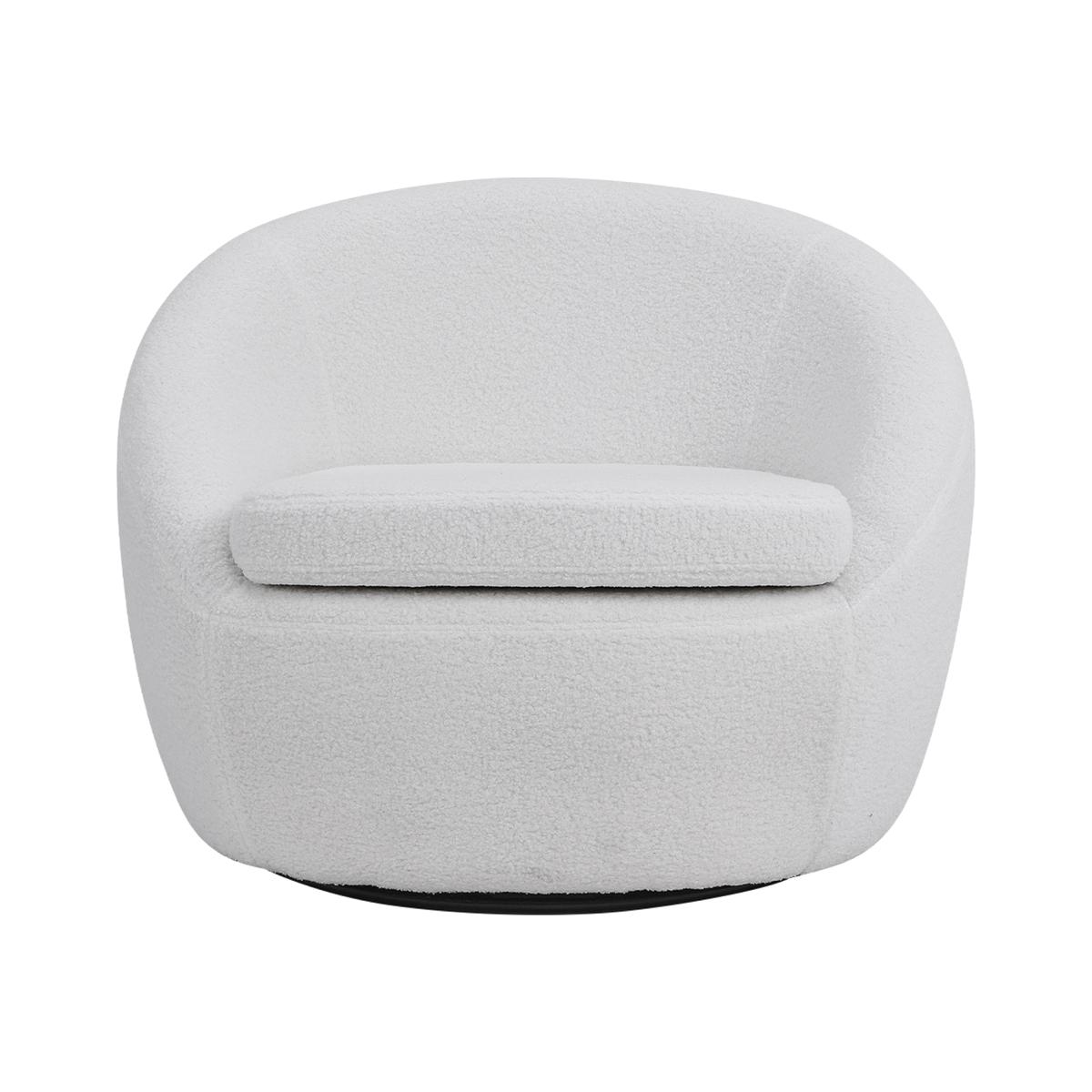 Enjoy your time on our Faux Wool Swivel Armchair, where comfort meets elegance. This chic chair features inviting contours that envelop you, offering a cloud-like seat cushion for supreme comfort during reading, TV time, or gaming. Its glamorous white faux fur upholstery effortlessly enhances any room. Crafted with utmost attention to quality, it stands on a durable metal base, accommodating up to 330 lbs and ensuring long-lasting use. Made from high-quality, non-toxic faux fur, it not only adds luxury but also provides a safe and comfortable seating experience. Spin around and immerse yourself in irresistible cosiness - a perfect addition to your home!