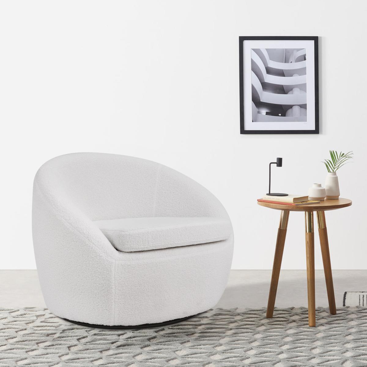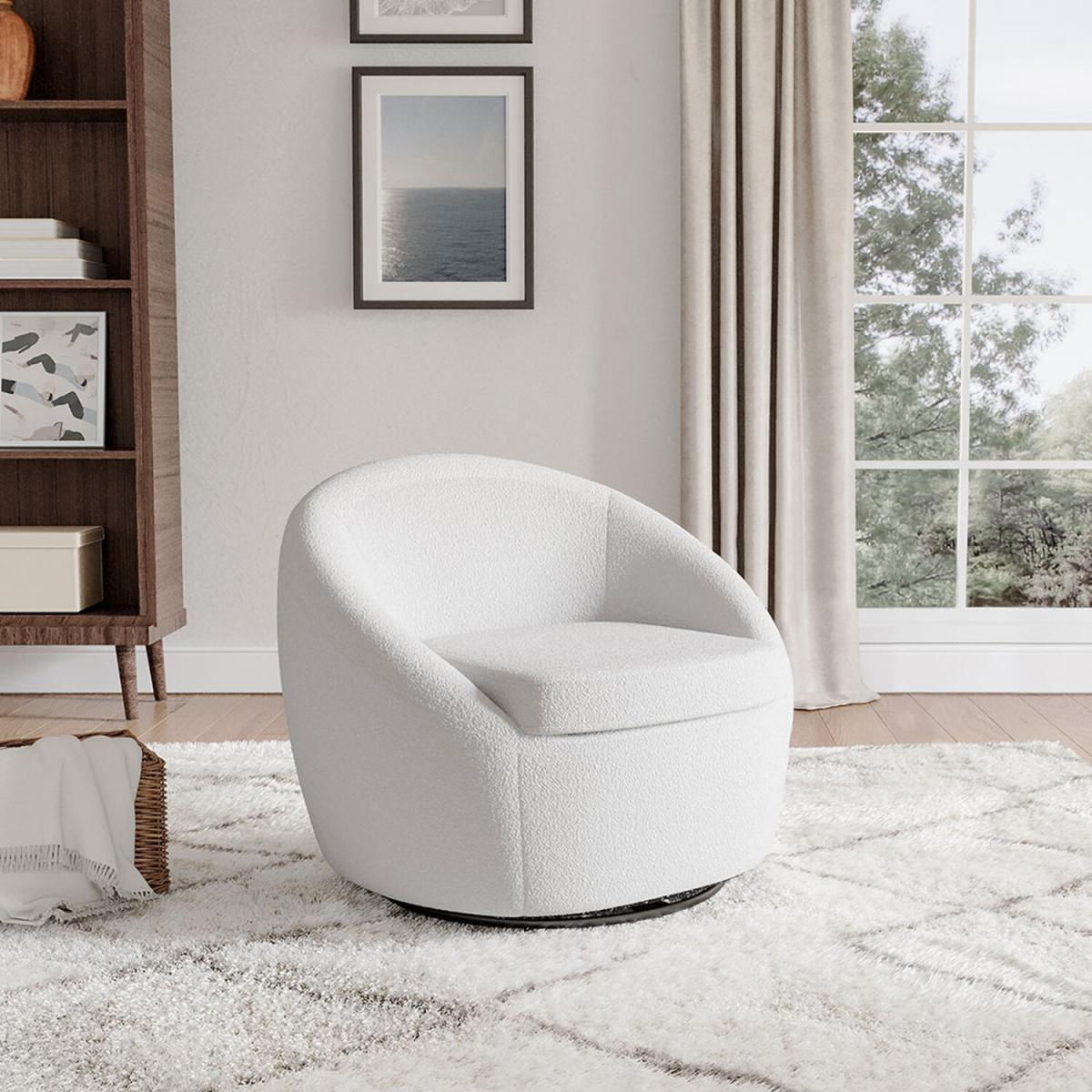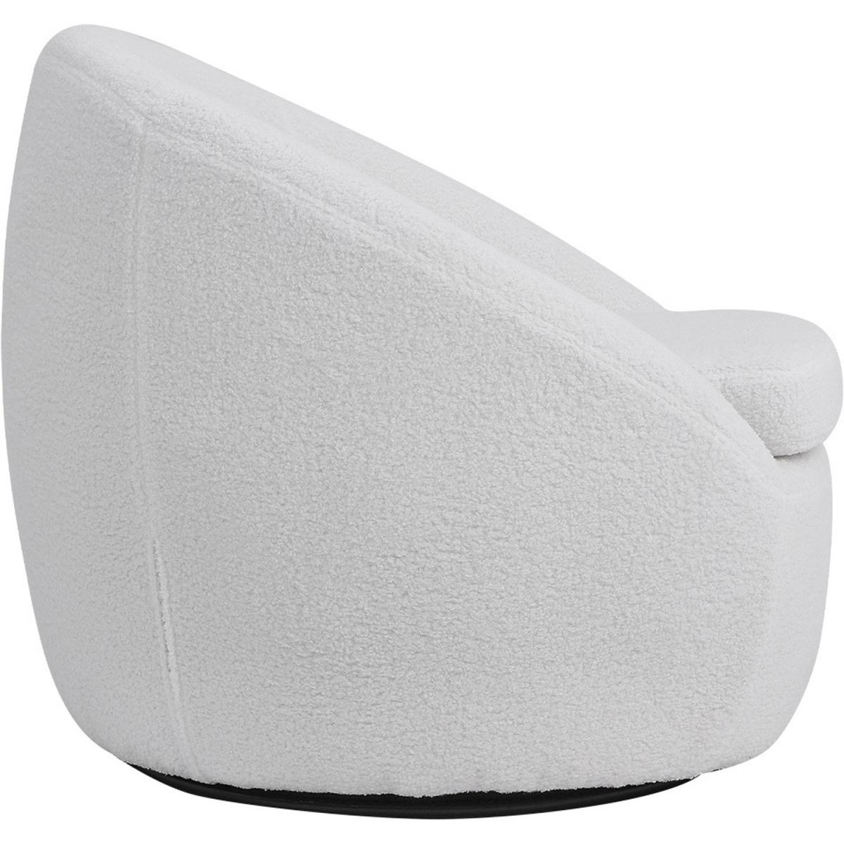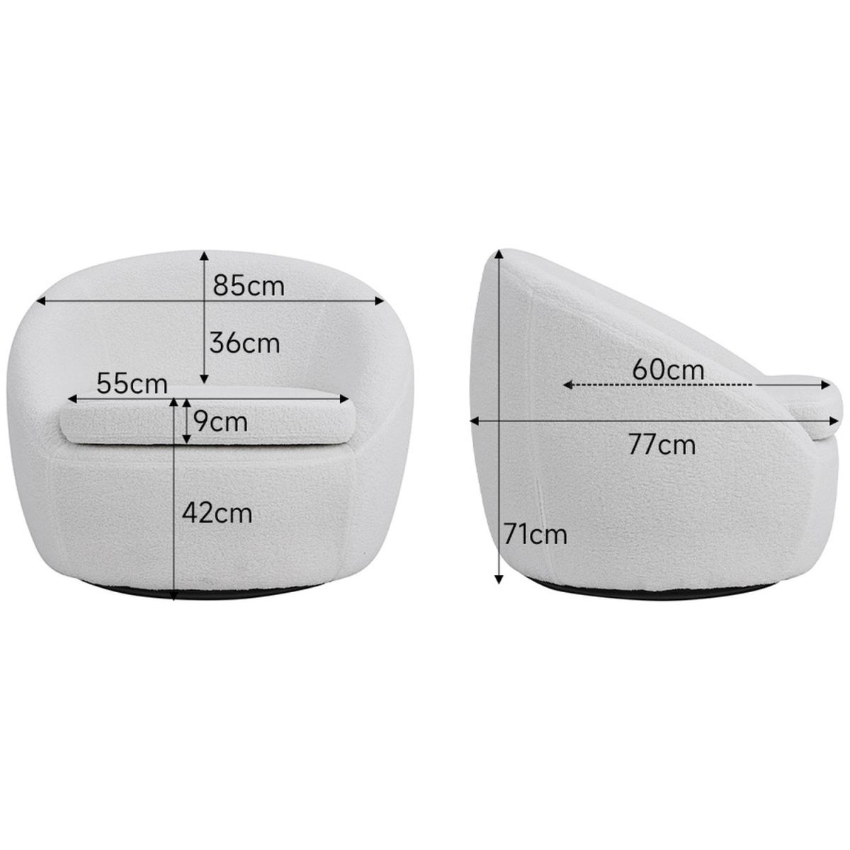 Enjoy your time on our Faux Wool Swivel Armchair, where comfort meets elegance. This chic chair features inviting contours that envelop you, offering a cloud-like seat cushion for supreme comfort during reading, TV time, or gaming. Its glamorous white faux fur upholstery effortlessly enhances any room. Crafted with utmost attention to quality, it stands on a durable metal base, accommodating up to 330 lbs and ensuring long-lasting use. Made from high-quality, non-toxic faux fur, it not only adds luxury but also provides a safe and comfortable seating experience. Spin around and immerse yourself in irresistible cosiness - a perfect addition to your home!