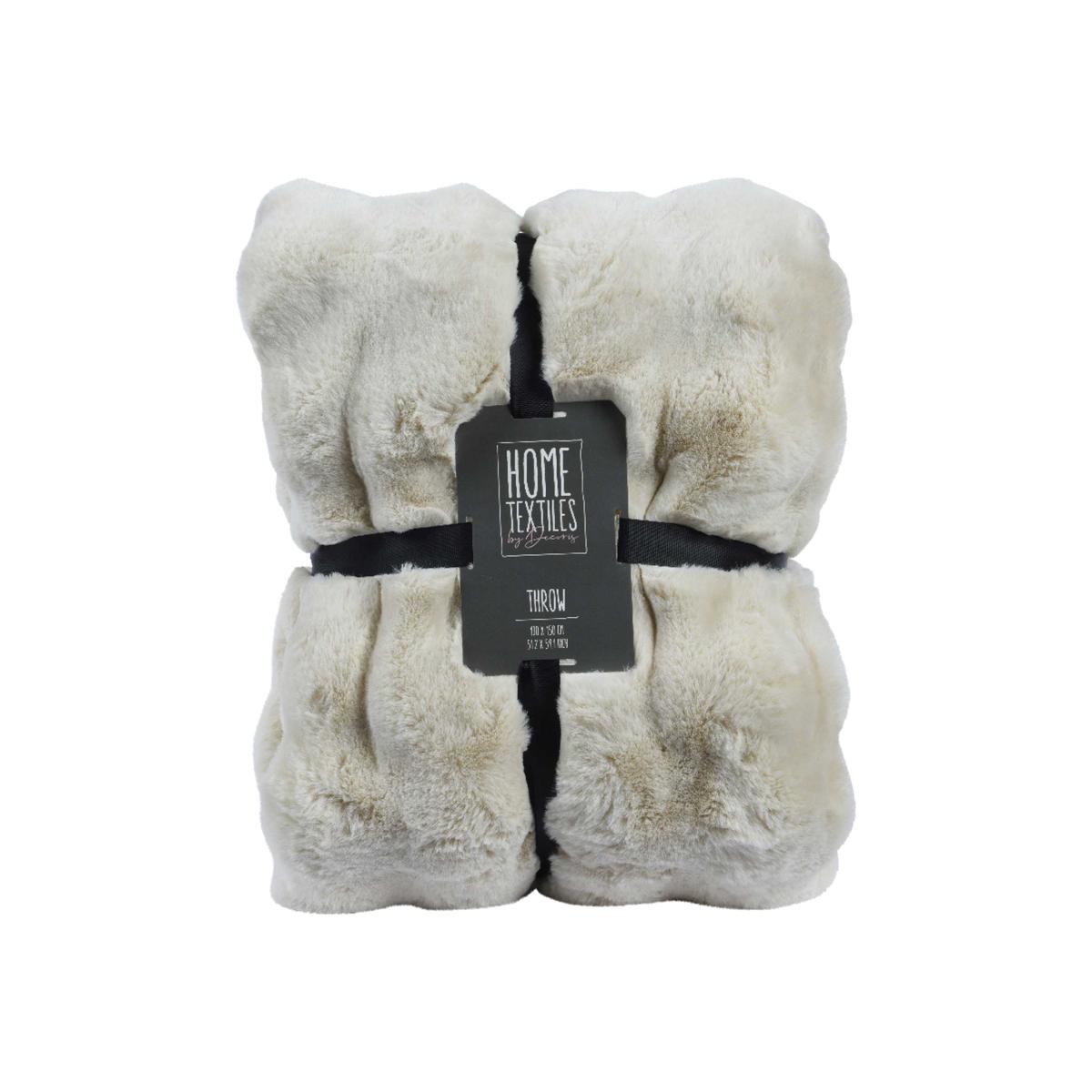 Faux Fur Off White Throw Blanket, Neutral | Barker & Stonehouse