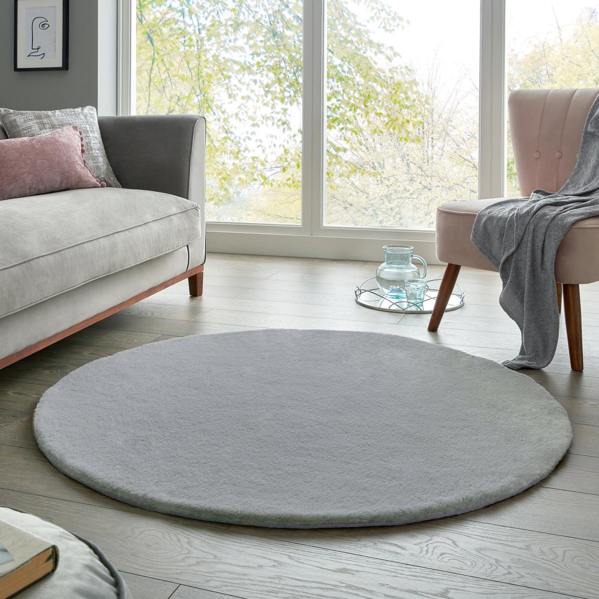 Choose the Faux Fur Supersoft Lush Circle Rug to add a cosy layer to your space. In a range of different shapes and sizes, the Supersoft Lush design is lightweight and versatile, perfect for moving around your space as your style changes. Crafted in polyester, the Faux Fur Supersoft Lush range is ideal for adding foot-sinking softness to your space. We love using Supersoft Lush in bedroom and living rooms as a finishing touch. Don't forget our handy anti-slip mat[here,](https://www. dunelm. Rug pictured is 133cm x 133cm. On opening, re-roll your rug pile out and leave in a warm room for 24 hours before putting in place. This will help to reduce wrinkles and curling from packing. Use a slip-resist pad to help keep your rug in place and provide additional protection for hard floors. Before using any cleaning products on your rug, test an inconspicuous area first for colour fastness. Do not pull any loose threads, please cut carefully with scissors to remove. Avoid prolonged exposure to direct sunlight as this may cause fading of some dyes. Turn your rug regularly to ensure even wear. Clean spills immediately by blotting with a clean dry white cloth - do not rub. A small amount of fibre loss is normal on a new rug. Latex is used in the making of this rug. May be carefully vacuumed using a floor or brush attachment.