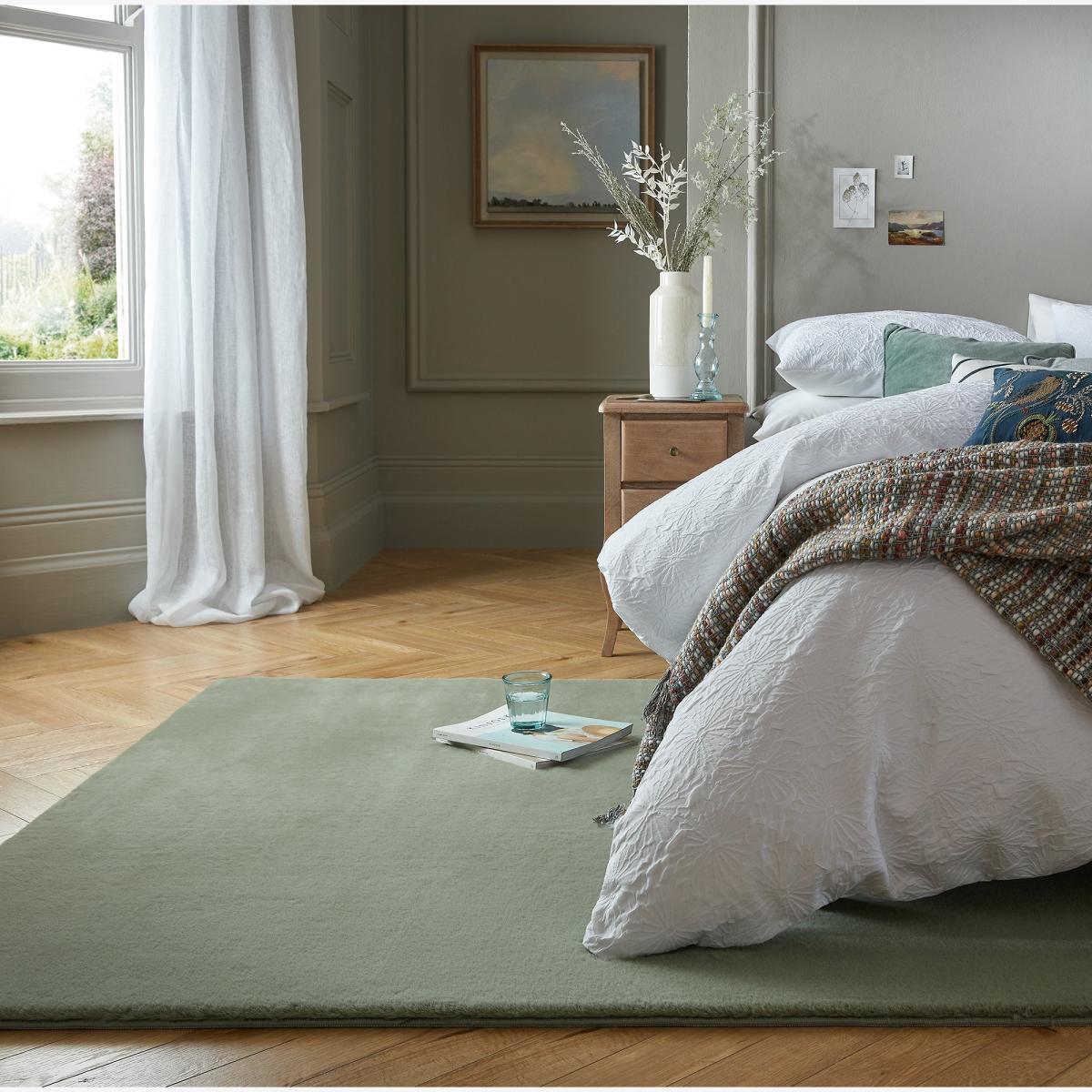 Choose the Faux Fur Supersoft Lush rug to add a cosy layer to your space. In a range of different shapes and sizes, the Supersoft Lush design is lightweight and versatile, perfect for moving around your space as your style changes. Crafted in polyester, the Supersoft Lush Faux Fur range is ideal for adding foot-sinking softness to your space. We love using Supersoft Lush in bedroom and living rooms as a finishing touch. Don't forget our handy [anti-slip mat](https://www. dunelm. Rug pictured is 160cm x 230cm. On opening, re-roll your rug pile out and leave in a warm room for 24 hours before putting in place. This will help to reduce wrinkles and curling from packing. Use a slip-resist pad to help keep your rug in place and provide additional protection for hard floors. Before using any cleaning products on your rug, test an inconspicuous area first for colour fastness. Do not pull any loose threads, please cut carefully with scissors to remove. Avoid prolonged exposure to direct sunlight as this may cause fading of some dyes. Turn your rug regularly to ensure even wear. Clean spills immediately by blotting with a clean dry white cloth - do not rub. A small amount of fibre loss is normal on a new rug. Latex is used in the making of this rug. May be carefully vacuumed using a floor or brush attachment.