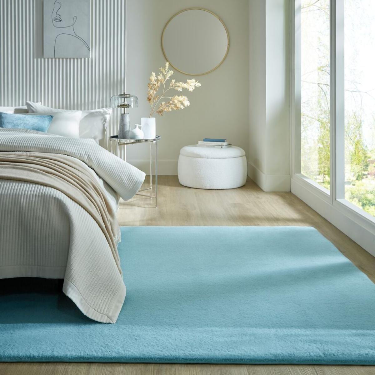 Choose the Faux Fur Supersoft Lush rug to add a cosy layer to your space. In a range of different shapes and sizes, the Supersoft Lush design is lightweight and versatile, perfect for moving around your space as your style changes. Crafted in polyester, the Supersoft Lush Faux Fur range is ideal for adding foot-sinking softness to your space. We love using Supersoft Lush in bedroom and living rooms as a finishing touch. Don't forget our handy [anti-slip mat](https://www. dunelm. Rug pictured is 160cm x 230cm. On opening, re-roll your rug pile out and leave in a warm room for 24 hours before putting in place. This will help to reduce wrinkles and curling from packing. Use a slip-resist pad to help keep your rug in place and provide additional protection for hard floors. Before using any cleaning products on your rug, test an inconspicuous area first for colour fastness. Do not pull any loose threads, please cut carefully with scissors to remove. Avoid prolonged exposure to direct sunlight as this may cause fading of some dyes. Turn your rug regularly to ensure even wear. Clean spills immediately by blotting with a clean dry white cloth - do not rub. A small amount of fibre loss is normal on a new rug. Latex is used in the making of this rug. May be carefully vacuumed using a floor or brush attachment.