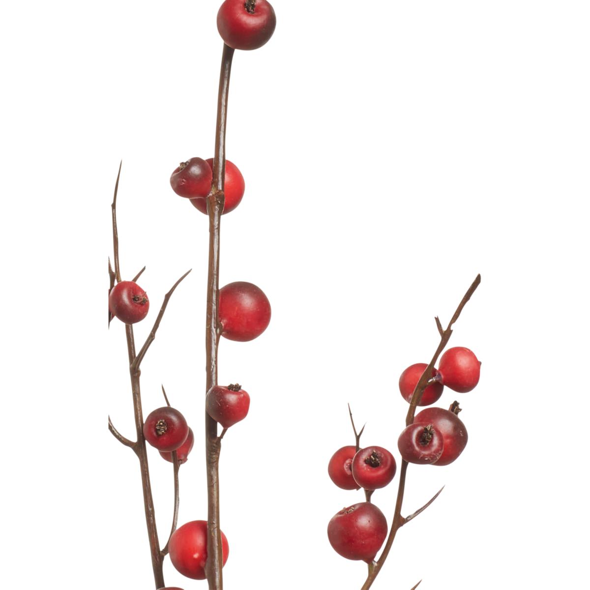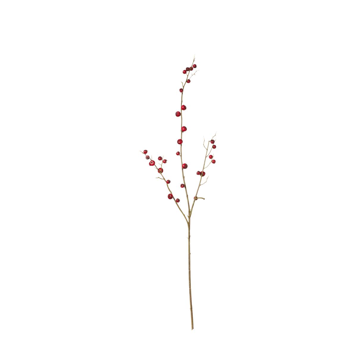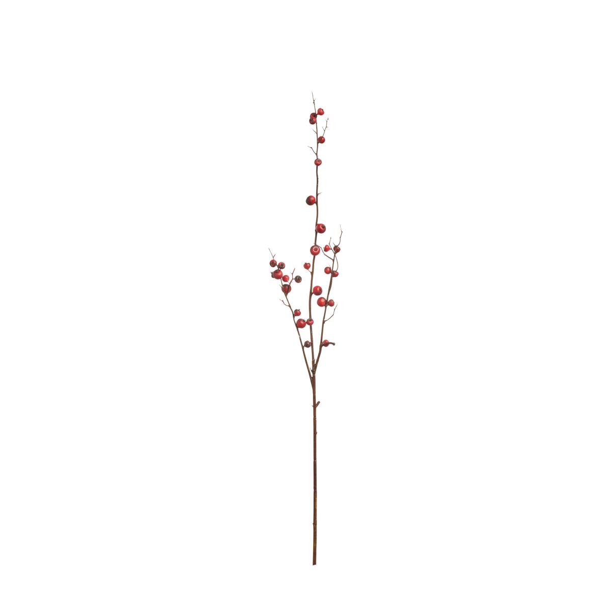 This stem is inspired by the Crataegus shrub, which blossoms in spring and produces small round berries in autumn, known as haws. These rich red berries are great for adding pops of colour to a scheme so, for an English hedgerow-style bouquet, pair our hawthorn stems with lots of faux greenery.