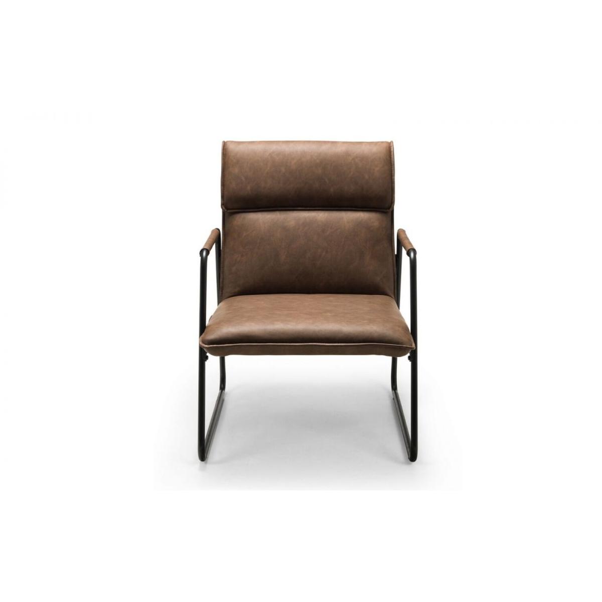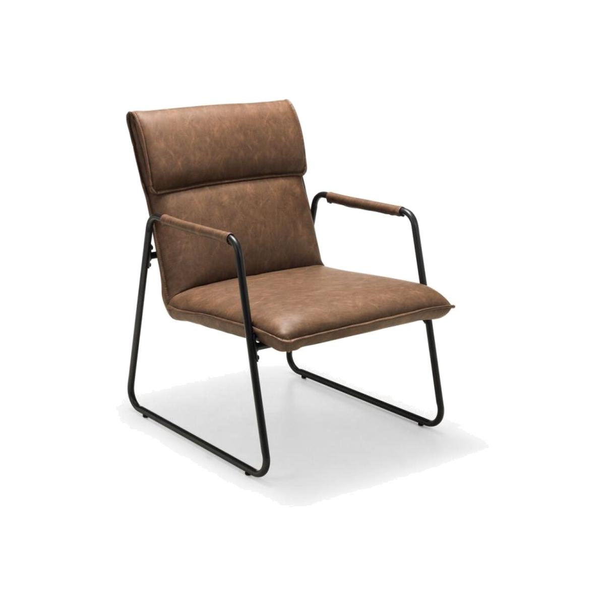 Inspired by a modern, industrial styling, this chair is upholstered in a soft faux leather fabric finished in a brown colourway. To chair is designed with a sturdy black metal frame, with a comfortable padded headrest to ensure maximum support. This chair is sure to make a dream scenario in any living space.