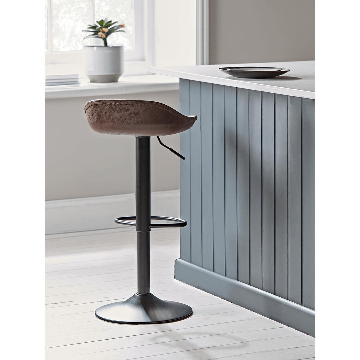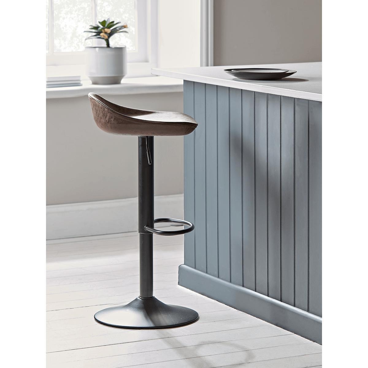 I’m a fan of this brown faux-leather stool for its clean lines and easy-care finish. It works particularly well in modern, Scandinavian or industrial-inspired kitchens thanks to the slim metal base and subtle grain detail. For styling, position two or three along a breakfast bar and layer in textured cushions or a soft wool throw to soften the hard lines. Pair it with matte-black or brushed-steel fixtures and a pale wood countertop to balance the warmth of the seat. Its adjustable height makes it versatile for both kitchen islands and home-office counters.