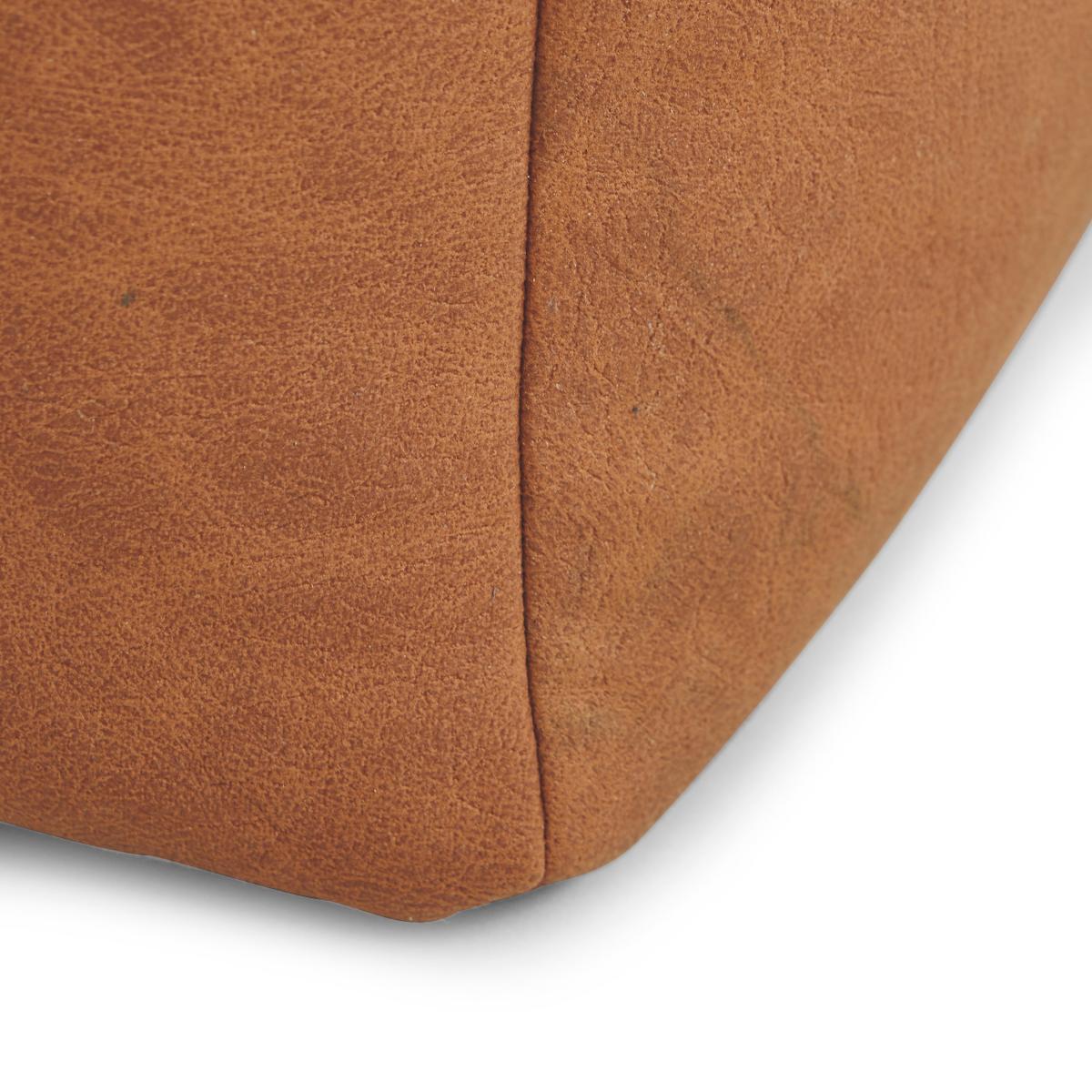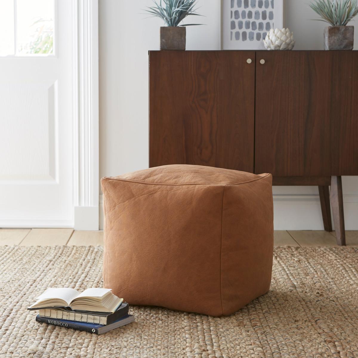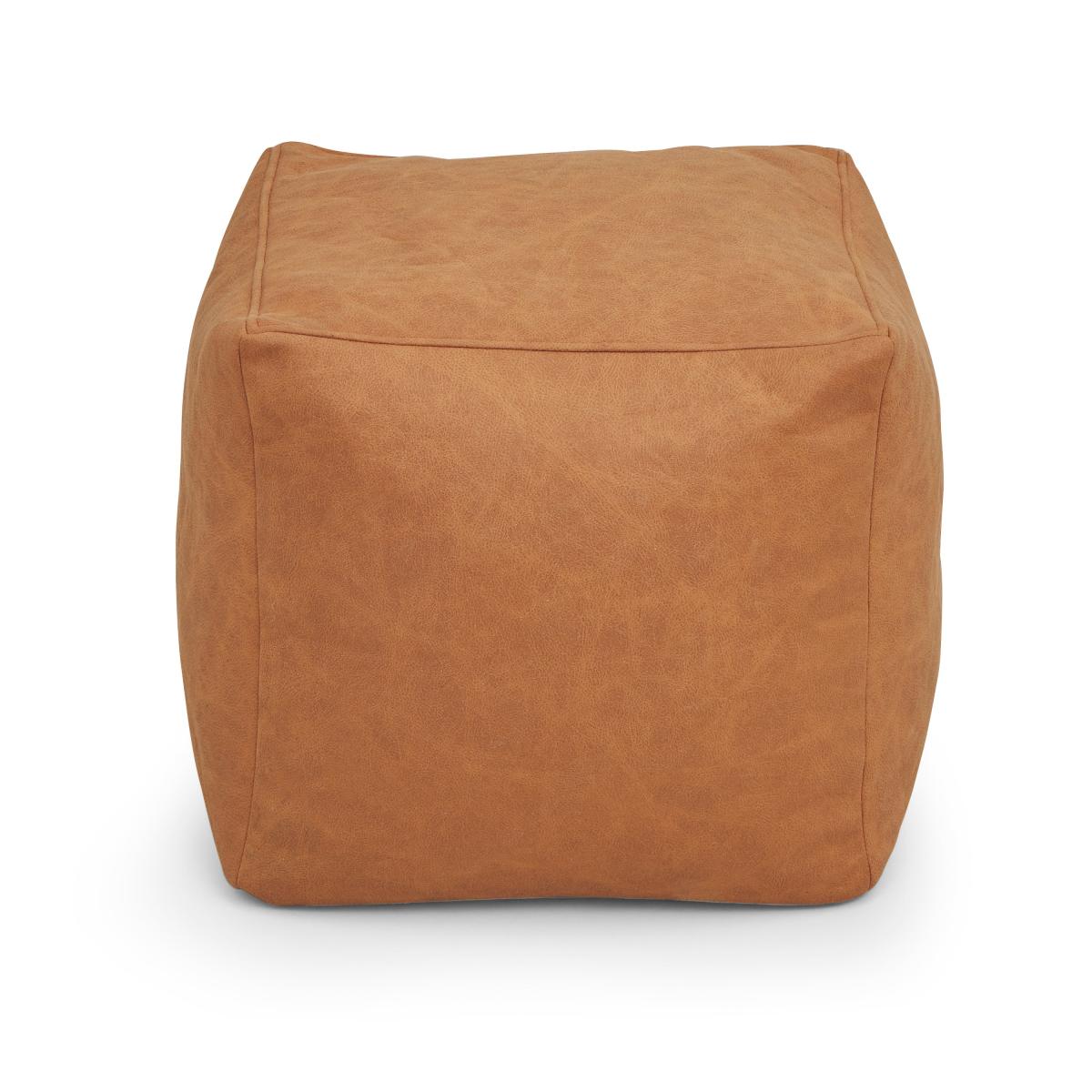 Perfect for a modern interior, this faux leather tan pouffe is a beautiful touch to any room. The pouffe has been filled with polystyrene beans with an inverted zip on the cover to keep the filling secure. This pouffe is an online exclusive and fire resistant.