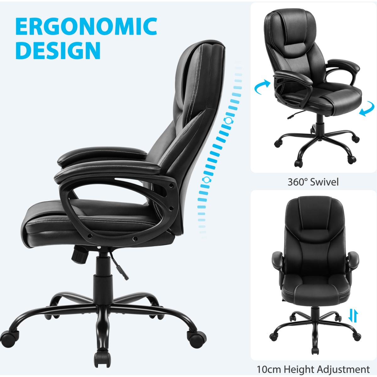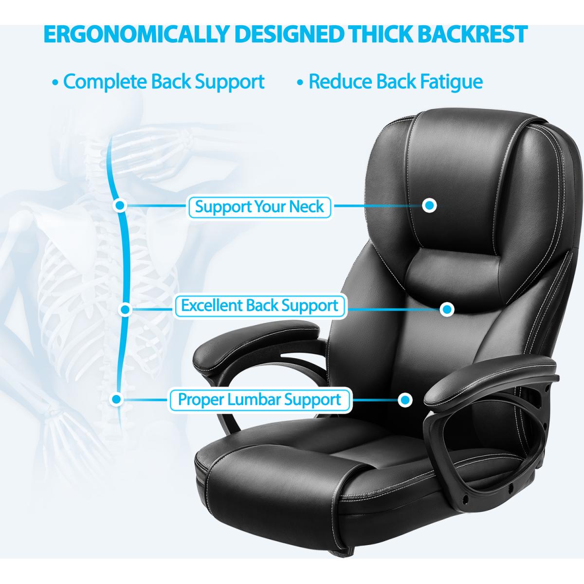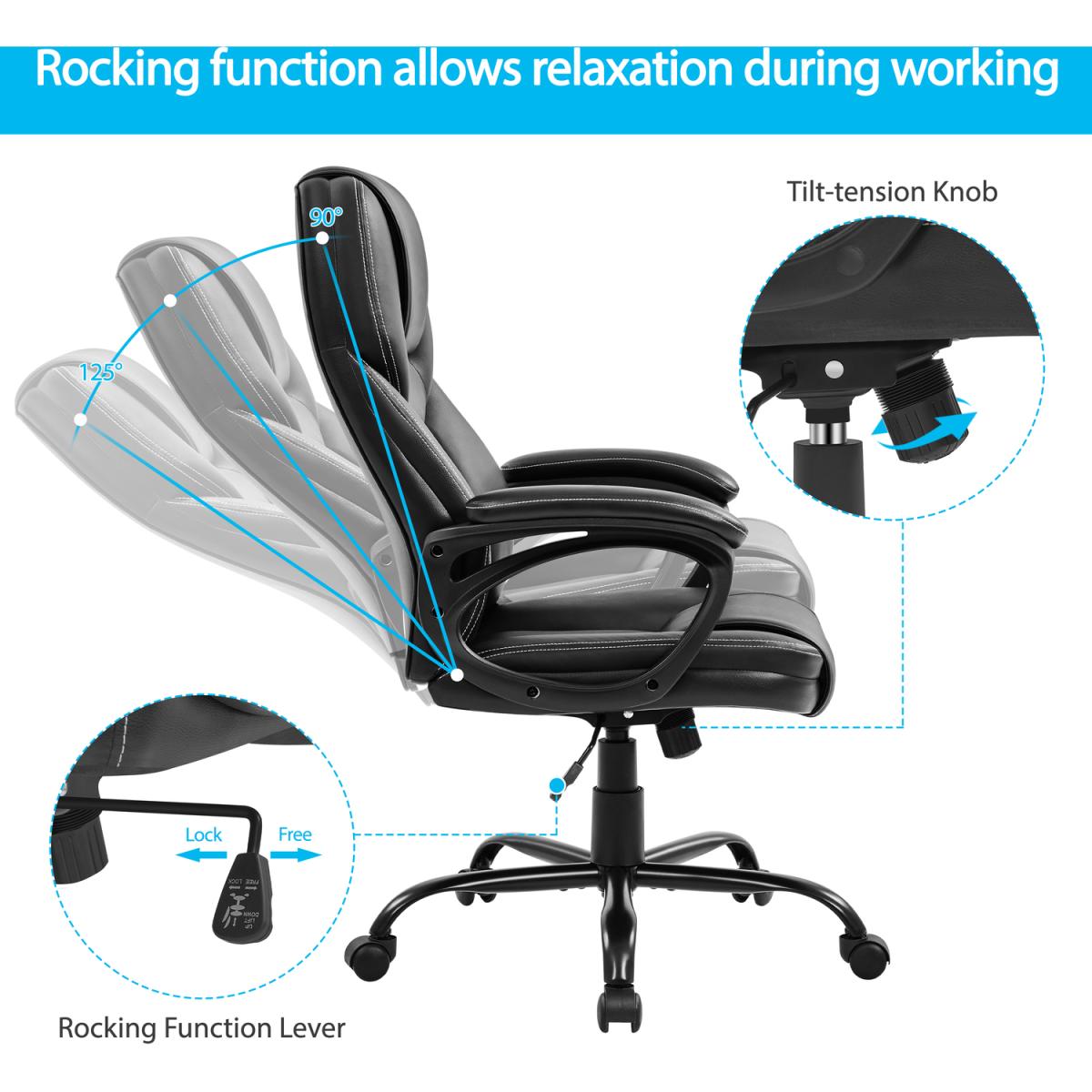 Looking for a new office chair for your home office or game room A cozy and elegant faux leather computer desk chair can be a nice choice. PU leather-covered chair is both easy to clean and long-wearing. A strong metal base makes sure our customers enjoy comforts and relaxing sitting. The seat height is adjustable according to individual needs. The foam-padded seat and high, curved back provide optimal body support and relieve muscle tension caused by long hours of working, meeting, or studying. It has a rocking feature as well. Mute castors allow 360 smooth mobility without scratching the floor. A versatile addition to study rooms, offices, home offices, reception areas and libraries.