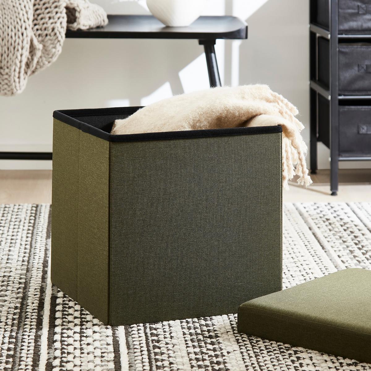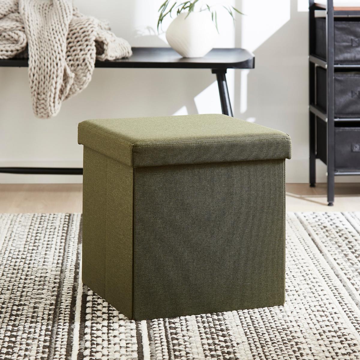 * Foldable storage ottoman* Quality padded lid* Easy to pack flat and re-assemble when needed Designed with a sturdy construction, this ottoman comes in a neat cube shape and features a quality padded lid to keep your contents concealed for neat, clutter free rooms. Perfect for easy storage this ottoman cube comes flat packed and is easy to assemble; simply unfold and put the base in the bottom.