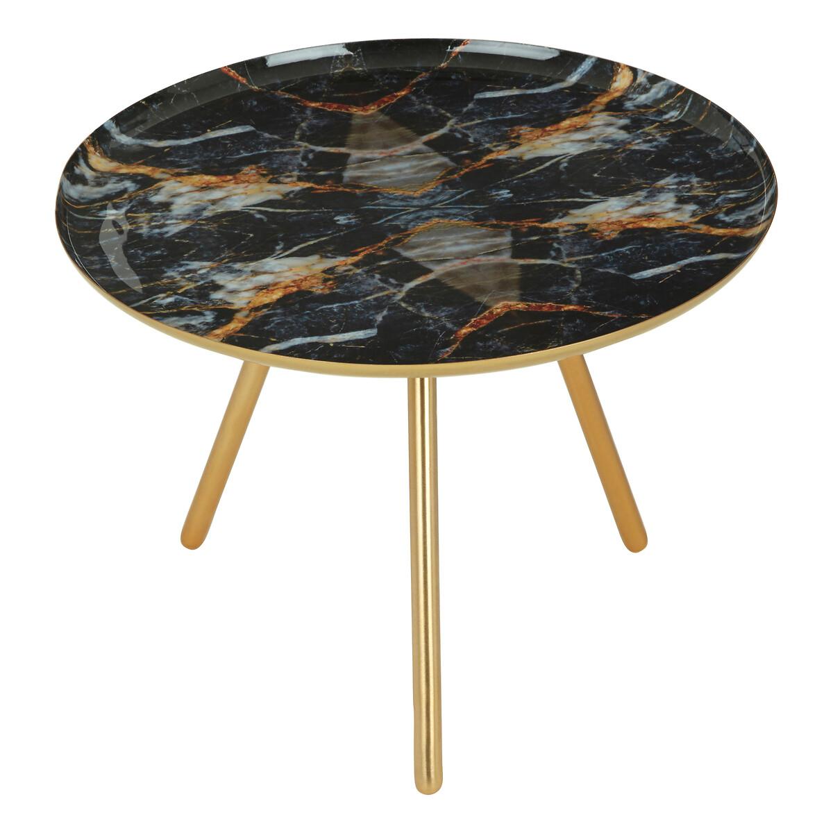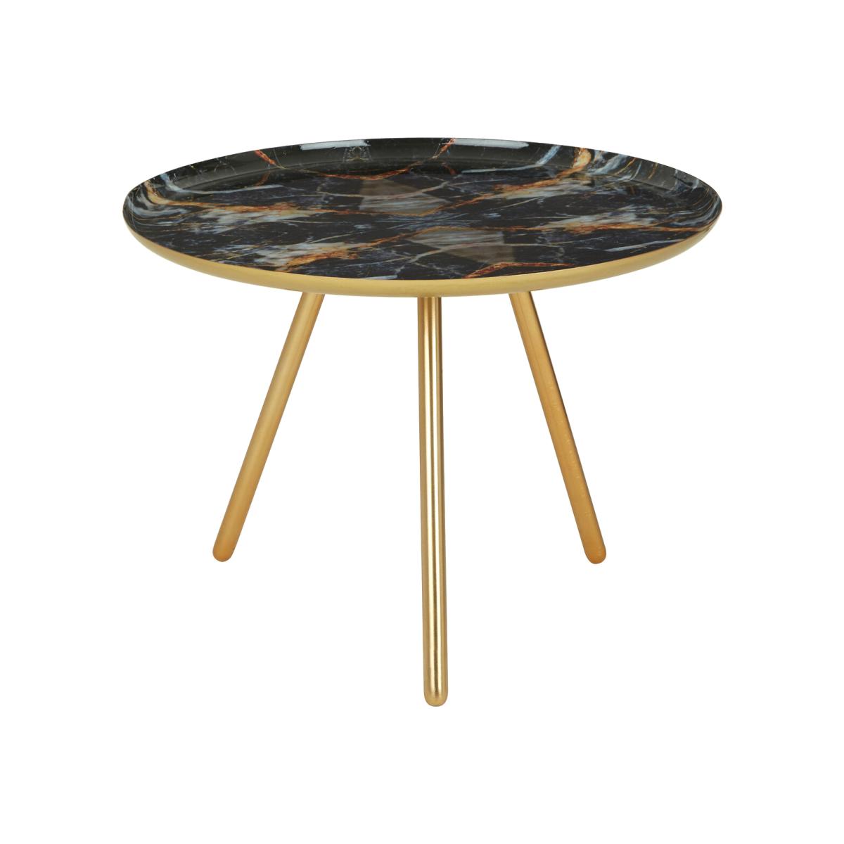 Its round top has sweeping, upturned sides and a faux marble coating with a myriad of shades and veins. The three minimal style legs are made from smooth iron. Requires Assembly. Product Dimensions: 48cmx48cmx36cm Please remember to measure your available space before ordering. Packaged Dimensions: 60cmx 55cmx 9cm Weight: 4.75kg. This product will be dispatched by one of our trusted suppliers. You’ll be contacted by their selected courier about your delivery.