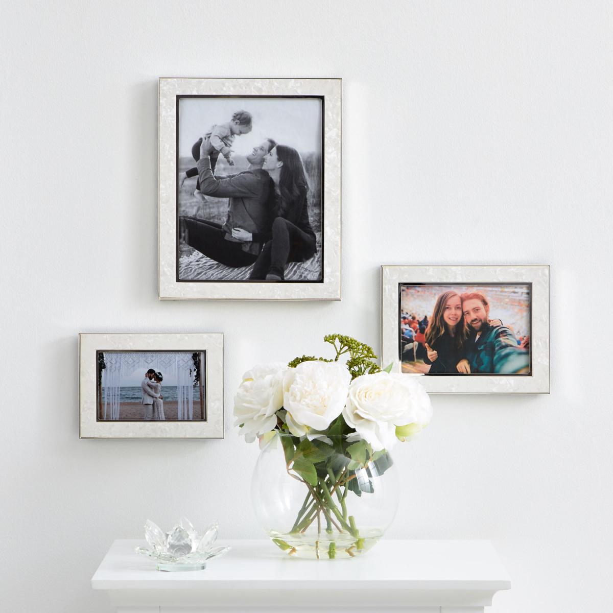 I really like this faux mother of pearl frame for its subtle shimmer and versatile style. Its silver finish makes it an excellent choice for contemporary or minimalist interiors, as well as classic or coastal themes. It’s compact at 10" x 8", making it perfect for bedside tables, shelves, or mantelpieces without overwhelming the space. For practical styling, consider pairing it with monochrome or pastel artwork, or family photos to keep the look fresh and personal. Its neutral tone also allows it to work well across different colour schemes, making it a reliable and elegant addition to many rooms.