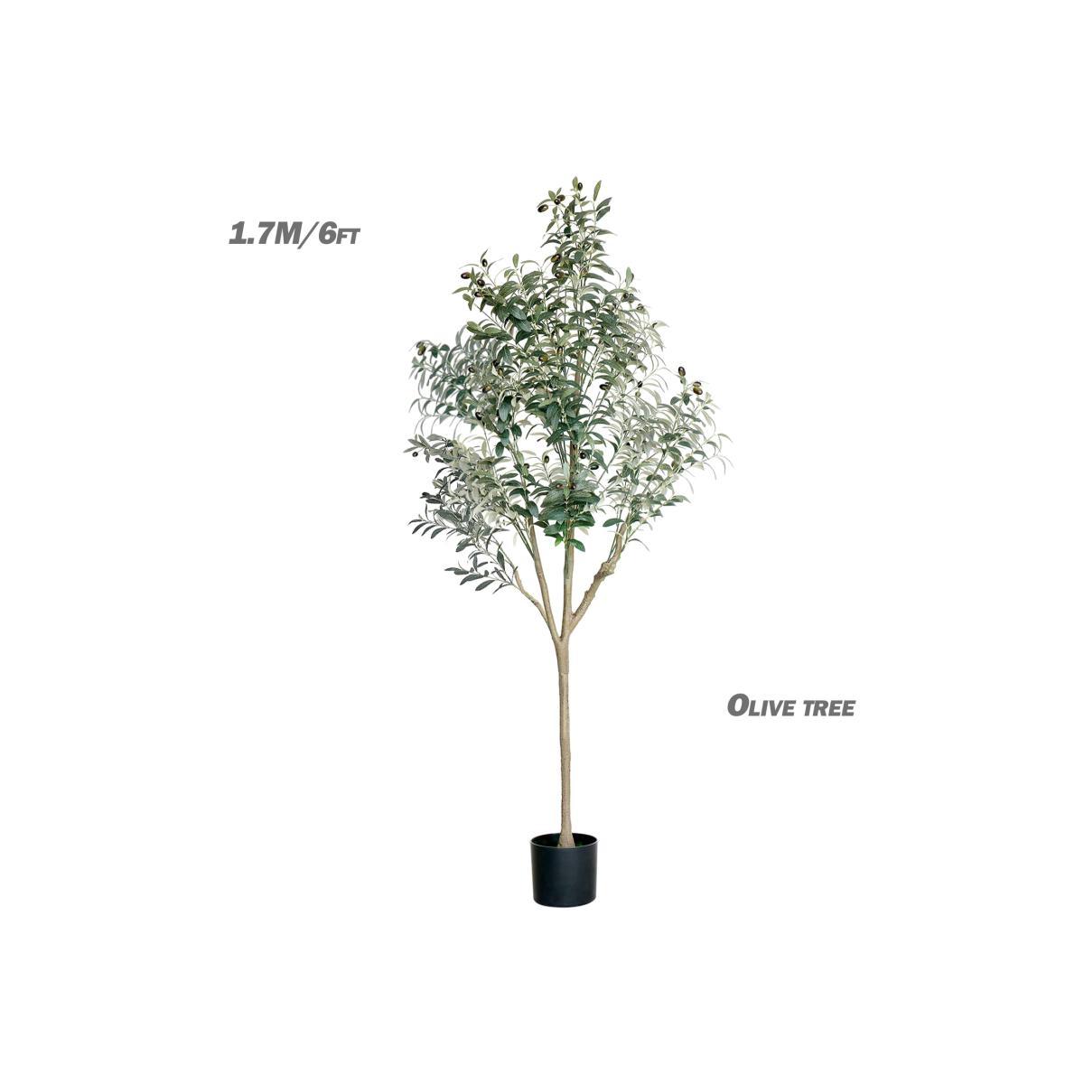 The trunk of this artificial olive plant is made of plastic and iron wire, durable and resistant to fading and aging, not easy to deform or change color, and the leaves are made of rayon fabric, easy to wipe and dust off. The artificial olive tree looks like a real one, its trunk, each leaf and each fruit are carefully shaped, making this olive tree very natural and lifelike. With no watering, pruning or fertilizing required and super easy to maintain, indoor tall artificial olive tree is perfect for those who dont have the time or energy to care for real plants. Tall artificial Olive trees are suitable for offices, malls, living rooms, hotels, entrances, hallways, bedrooms and more. It can also be used as holiday decorations, such as Christmas, Easter, weddings. Easy to Assemble,Our artificial olive tree is divided into two parts in order to transport, the lower trunk is assembled in a heavy duty flowerpot made of plastic and concrete. After receiving it, please just plug the upper and lower trunks together. Then please place the fake olive tree in a ventilated and dry place for 1 to 2 days, and the smell will disappear.