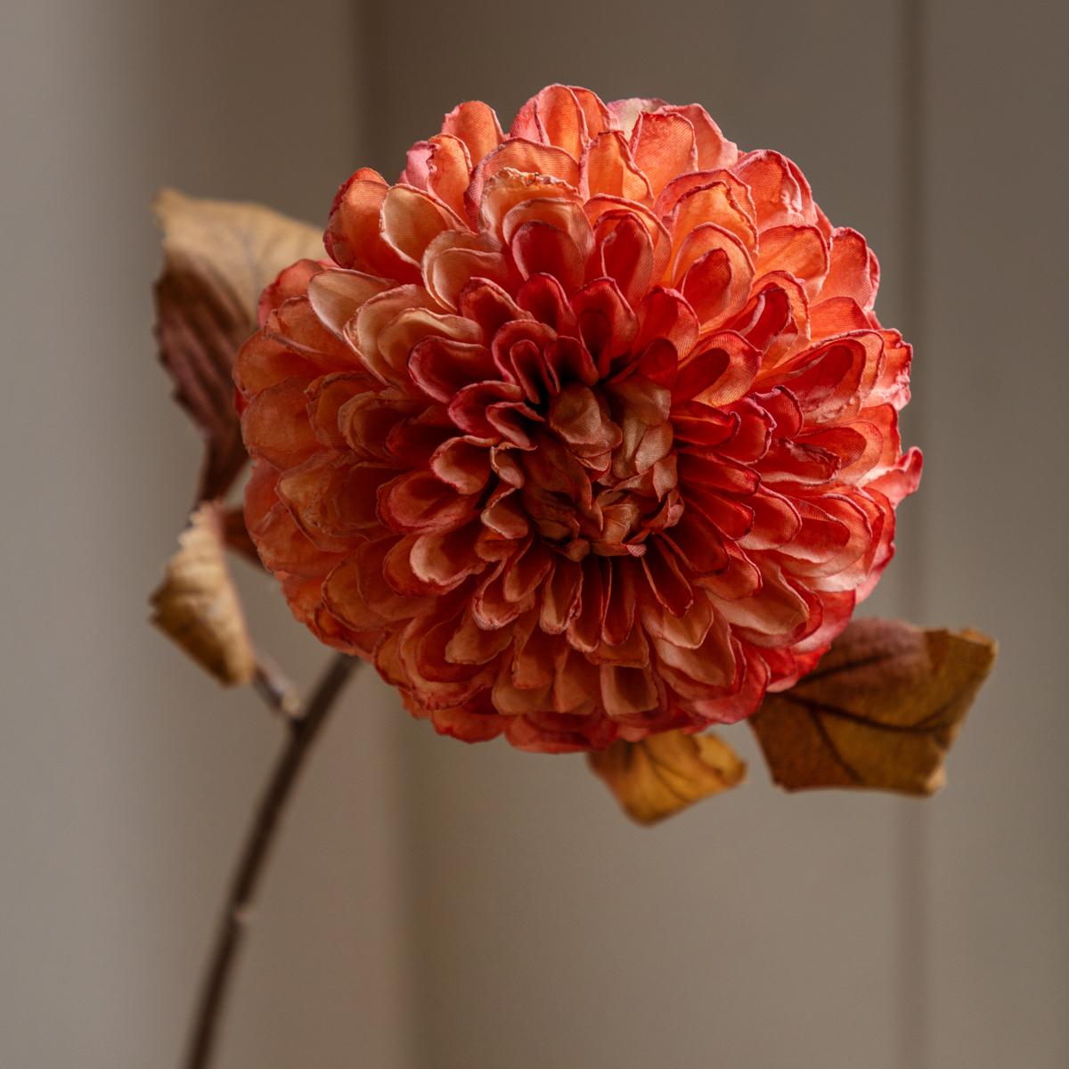 These faux orange dahlias are a fantastic pick for bringing colour and warmth into various interior styles without the fuss of fresh florals. I love how they instantly brighten up a side table, shelf, or centrepiece in both modern and traditional settings. Their vibrant hue works particularly well in neutral or minimalist spaces, adding a pop of colour without overwhelming the decor. For practical styling tips, group several stems together in a simple vase for impact, or cluster them with other faux foliage for a full, lush arrangement. They’re low-maintenance, long-lasting, and perfect for adding seasonal colour or maintaining a fresh floral look year-round.