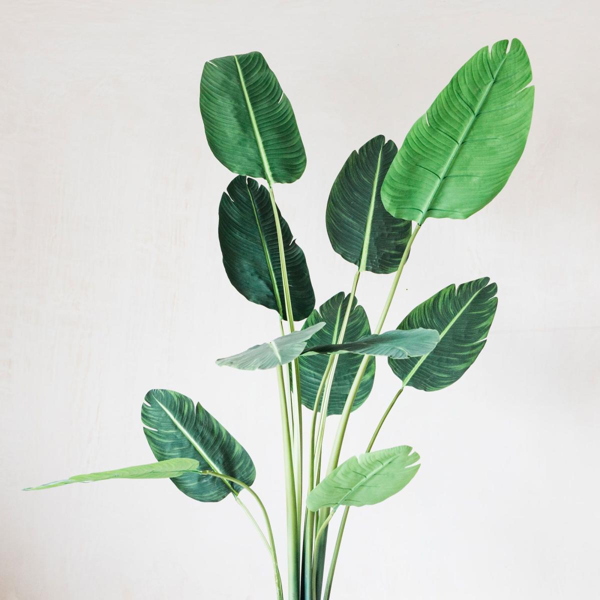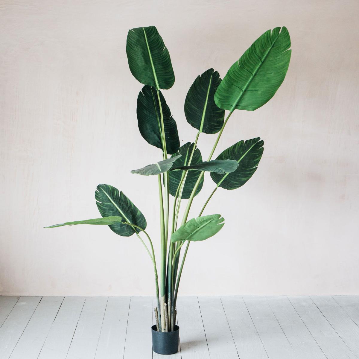 Create a botanical masterpiece in your home with this faux potted palm plant. Its large exotic leaves will brighten any corner in your home. Presented in a simple black pot so you can style with any type of planter. Approx. H190cm. Made of plastic.