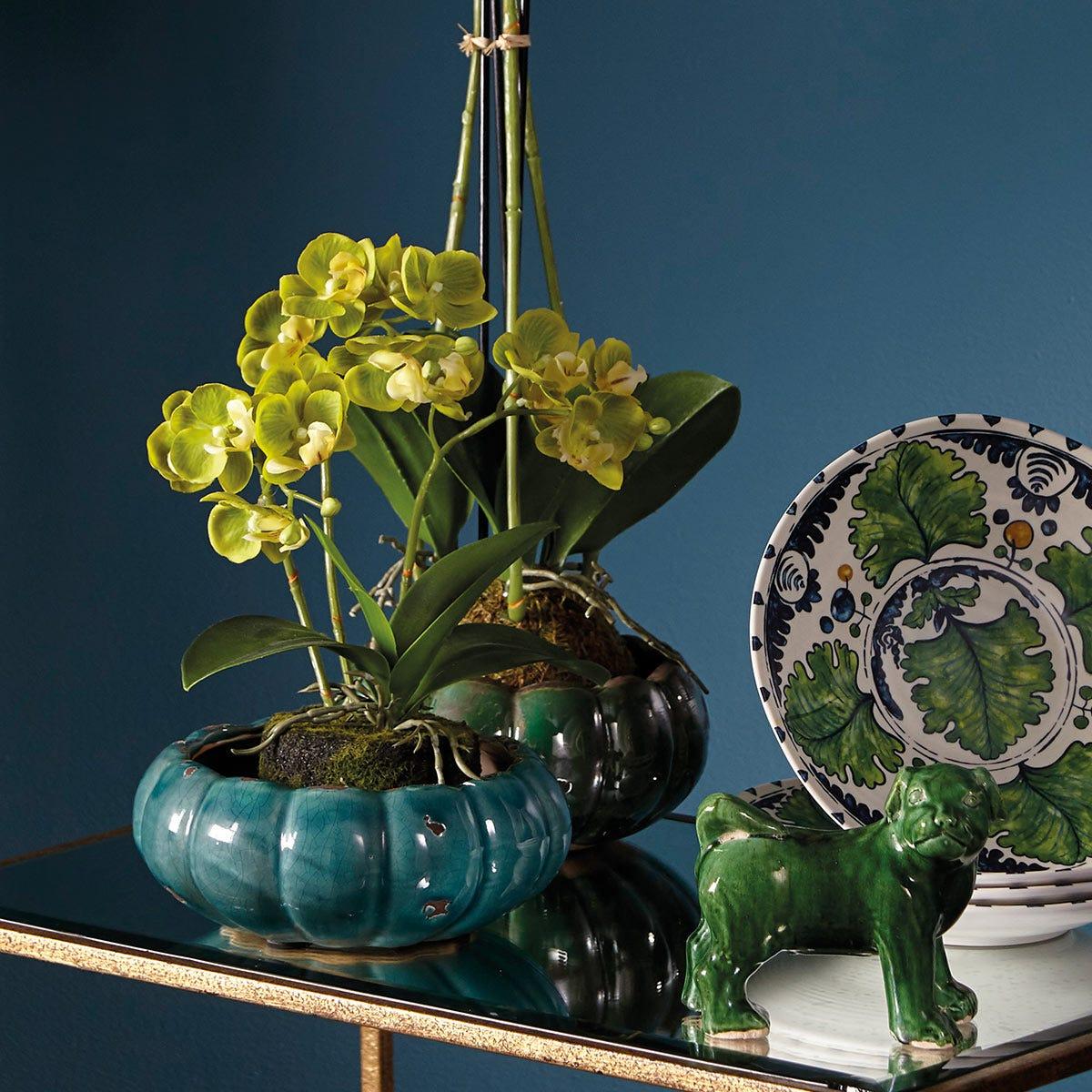 Faux Planted Mini Orchid - Green