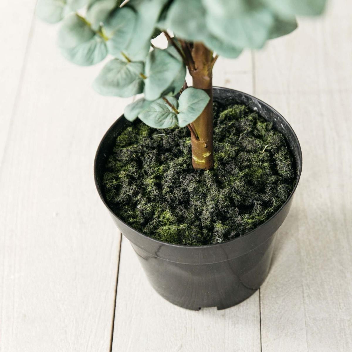 With it's impressive height, our faux eucalyptus tree is displayed in a simple, black plastic pot with a realistic moss effect surface, perfect for bringing a botanical touch to your living space.