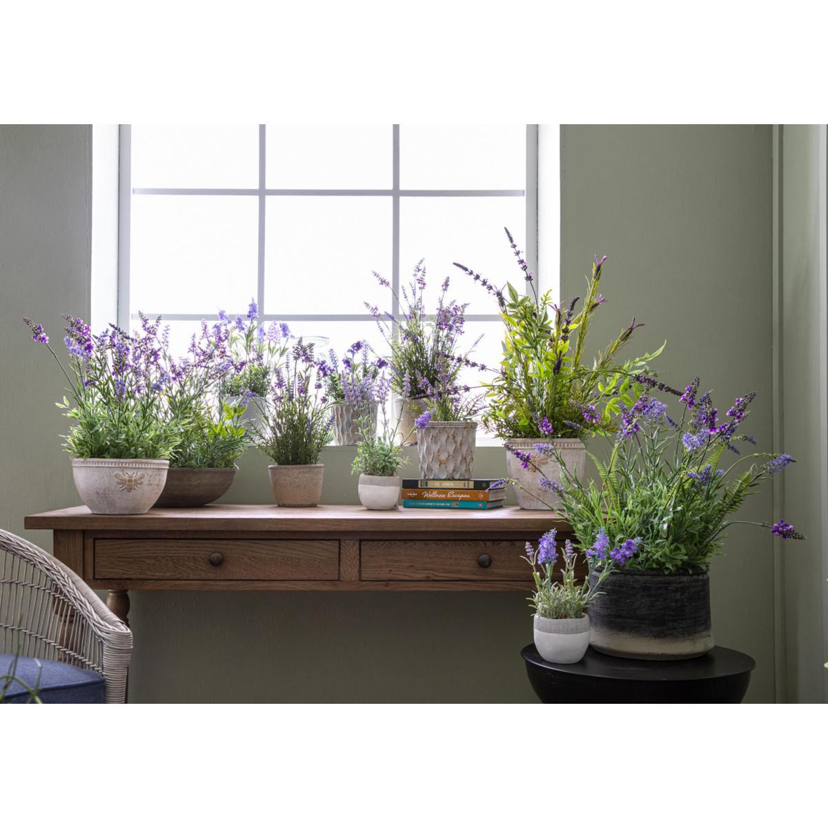 I love the faux potted lavender because it adds a pop of colour and a touch of countryside charm without the maintenance. It's perfect for bringing a bit of nature indoors, especially in kitchens, bathrooms, or shelves where real plants might struggle with light or humidity. This piece works well in both modern and rustic interiors, offering a versatile, fresh look year-round. Styling tips include placing it in a simple bowl or in a decorative container to elevate its presence or grouping it with other faux herbs or plants for a botanical display. It’s a practical choice for adding colour and texture without the worry of watering or wilting.