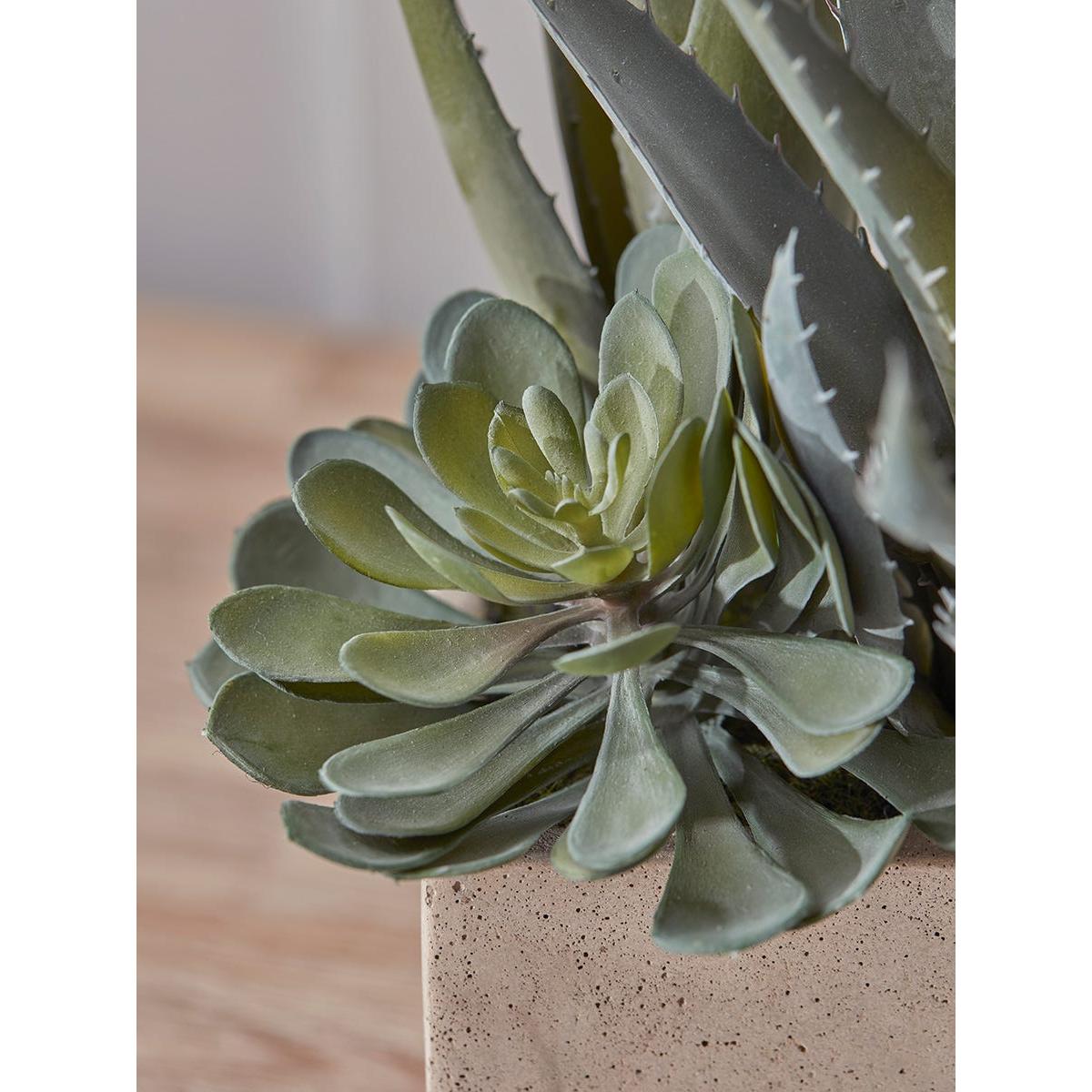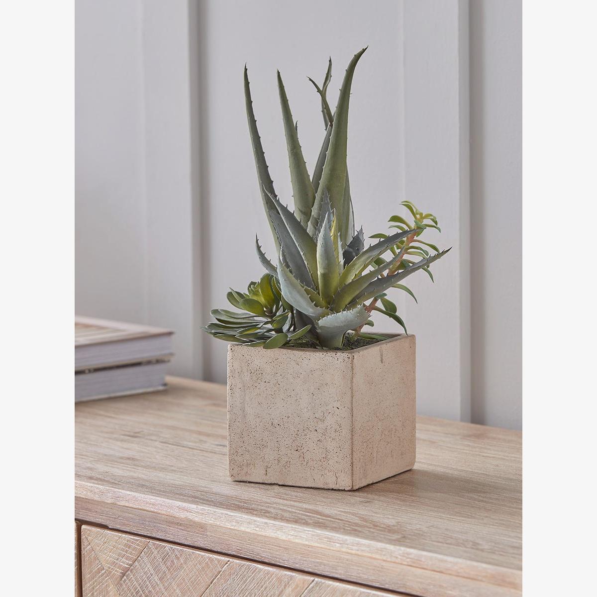 Enervate your living space with this contemporary arrangement of faux plants. Offering an injection of vivid green and softer silver grey tones, the square planter gives the appearance of concrete and supports a selection of authentic looking succulents.