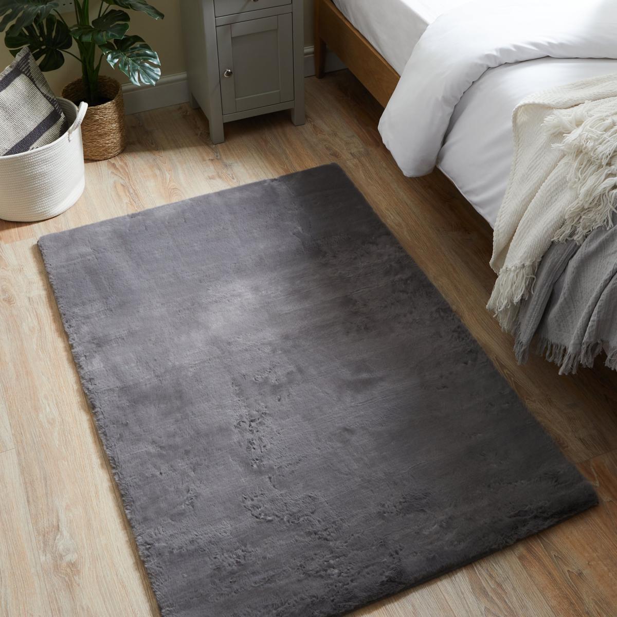 I love this faux rabbit fur rug for adding a cosy, tactile element to a variety of interiors. Its charcoal shade makes it versatile and easy to blend with both neutral, minimalist schemes and richer colour palettes. This rug works particularly well in bedrooms or living areas where a plush, inviting surface is desired - layering it under a bed or sofa creates a sense of warmth and luxury. Practical styling tips include pairing it with textured linen or cotton furnishings to enhance its tactile appeal, and placing it where it can be appreciated up close to maximise its cosy impact. Despite its soft appearance, it’s low-maintenance and suitable for busy households, making it a stylish yet practical addition.