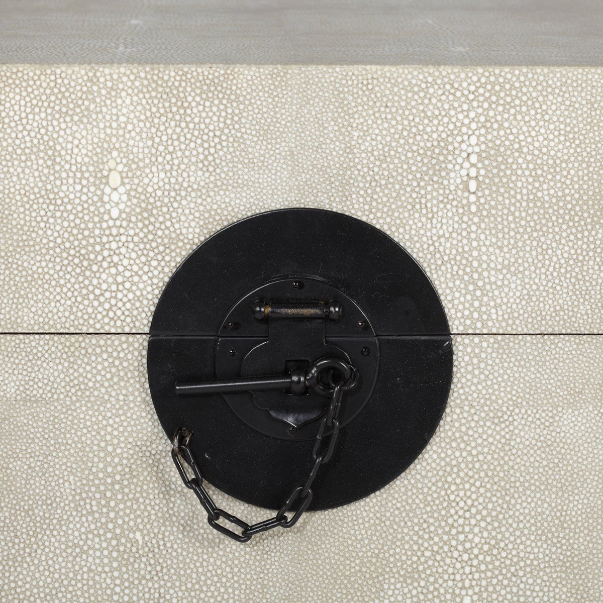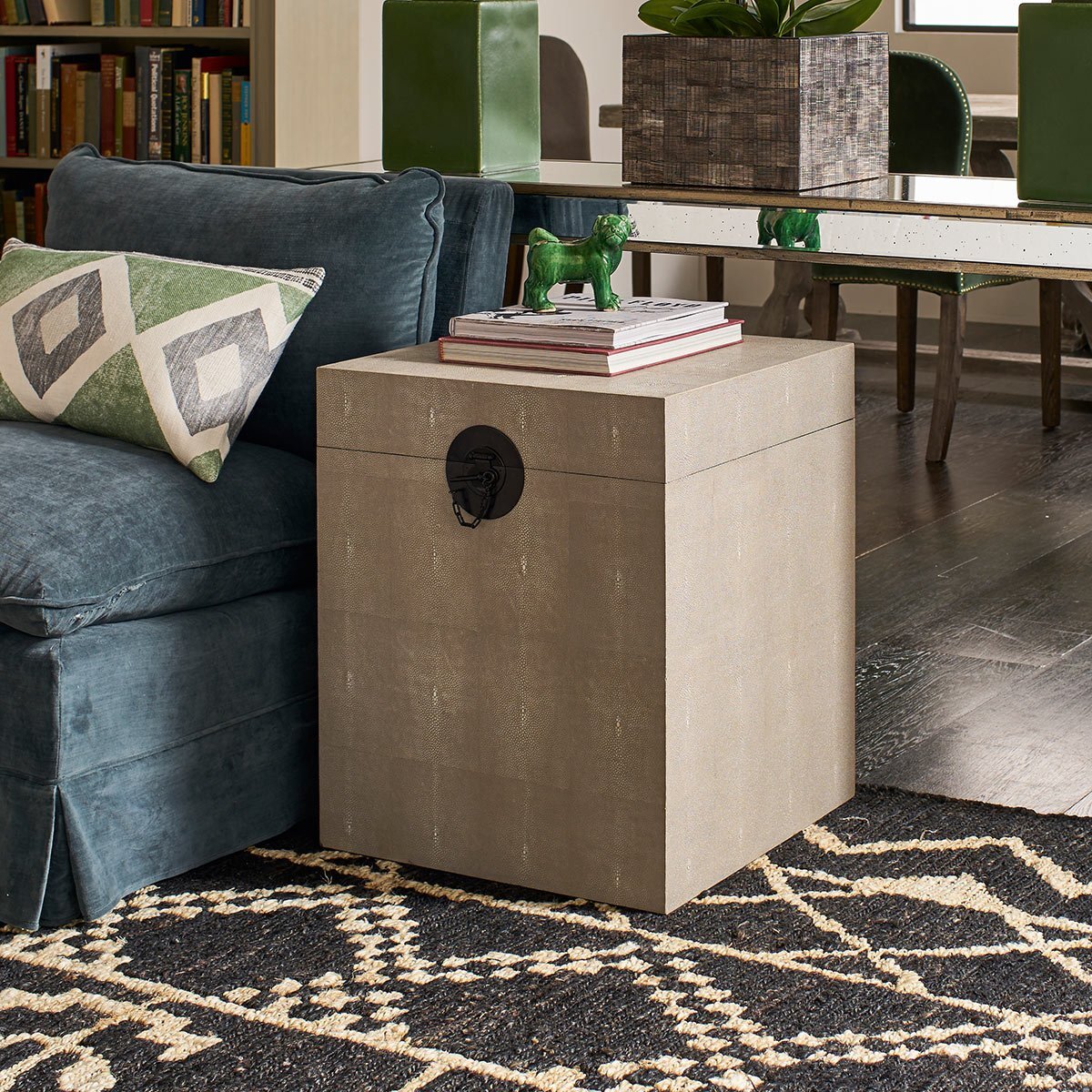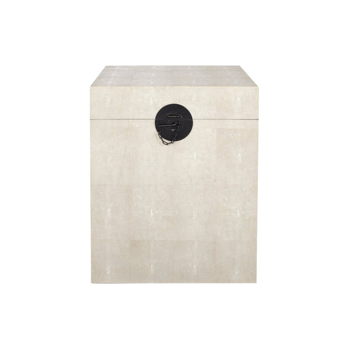A smaller, square version of our popular Faux Shagreen Trunks that will provide valuable storage beside a bed or sofa. Based on our best-selling Chinese Wooden Trunks, they feature antiqued brass hinges and a traditional closure, coupled with a stylish Faux Shagreen exterior. Only available in Mole Brown and Taupe. Faux Shagreen Bedside Trunk - Taupe