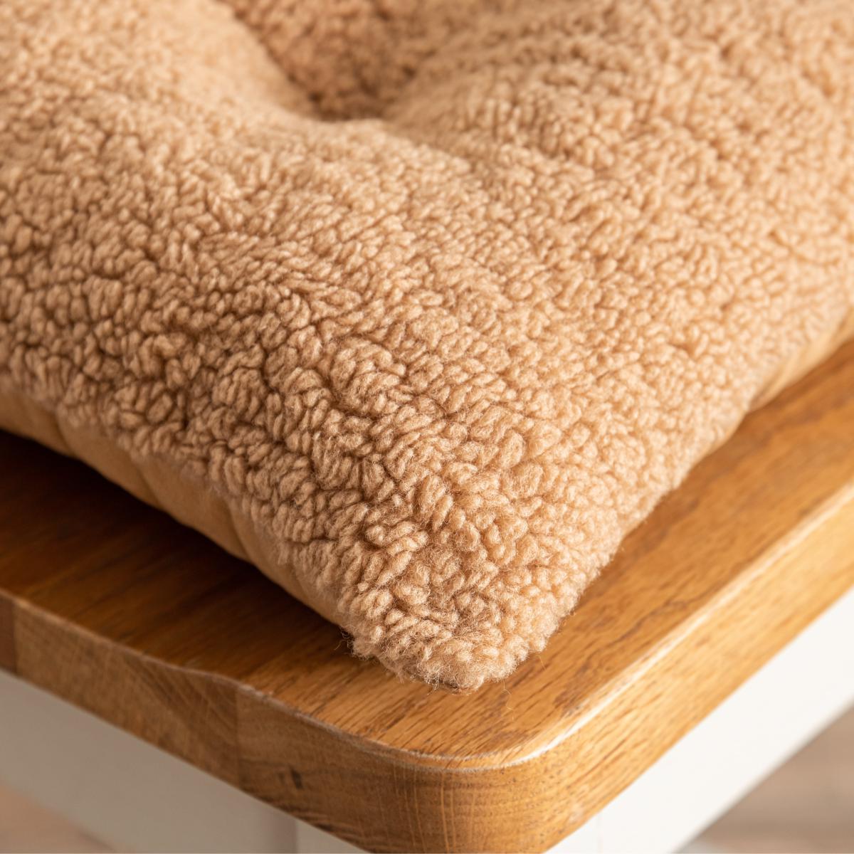 I love the faux shearling seat pad for its cosy, inviting look and plush texture that instantly elevates any wooden or painted chair. It's a practical addition for kitchens, dining rooms, or even a home office, adding comfort without compromising style. Its neutral tan shade is versatile and works well in both neutral, rustic, or Scandinavian-inspired interiors. For a cohesive look, pair it with other tactile textiles like wool throws or knitted cushions. Additionally, layering it with a matching or contrasting colour scheme can bring subtle warmth and texture to your space while offering a soft, supportive seat.