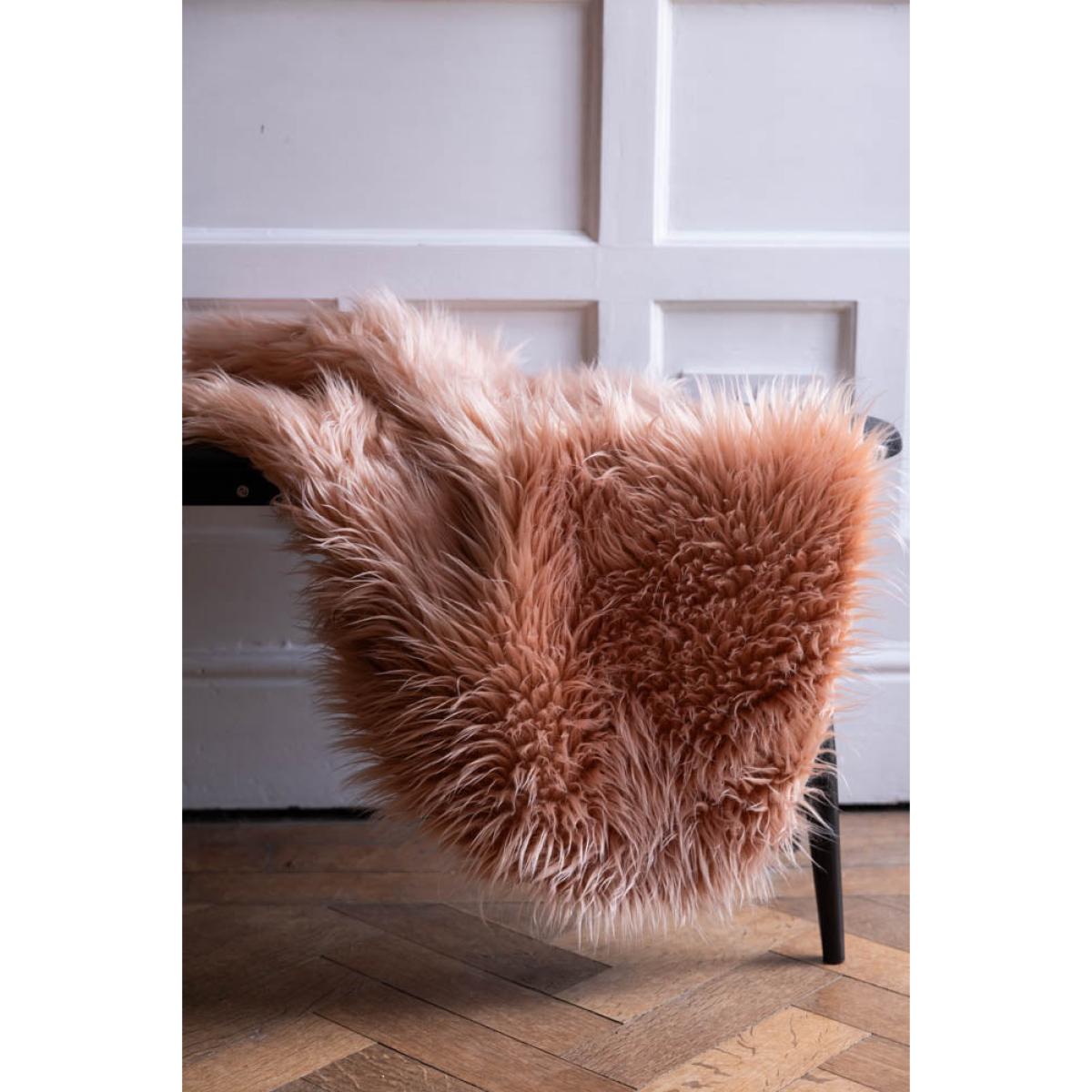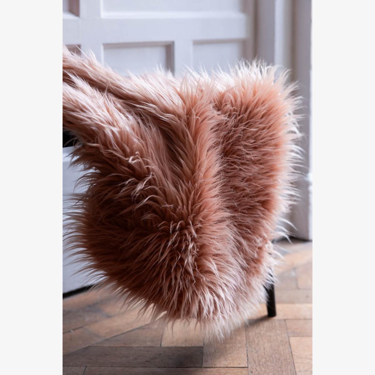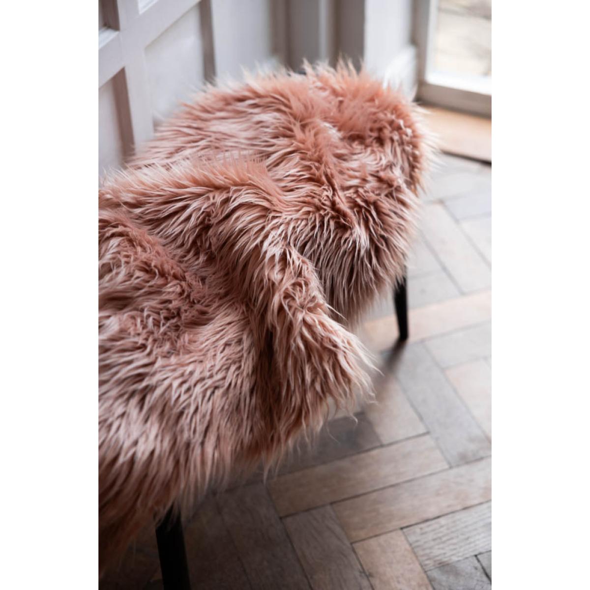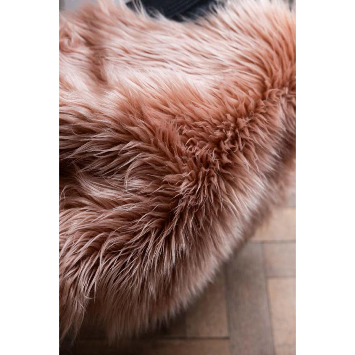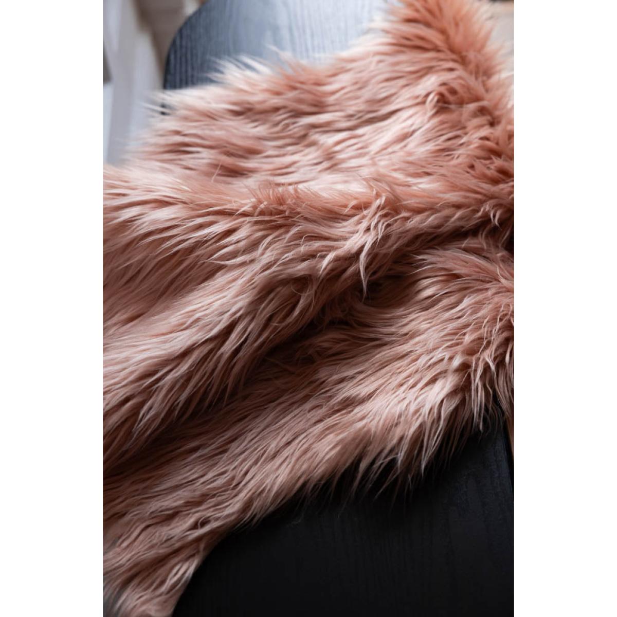 Bringing tactile materials into the home is a simple but effective way to add warmth, charm and character to your space. This faux sheepskin has all those qualities and more, and is a truly versatile piece that looks as fabulous in the bedroom or study as it does in the living room. Alternatively, style this on kitchen bench to add texture and a pop of colour, or drape across an accent chair and bingo! You have a brand new item of gorgeousness in your home. You know what we say – your home, your rules, so do what you love and love what you do! Truly a piece to make you smile.   - Faux Sheepskin in Blush  - Material: Polyester  - Measures: L90cm x W60cm - Handwash only