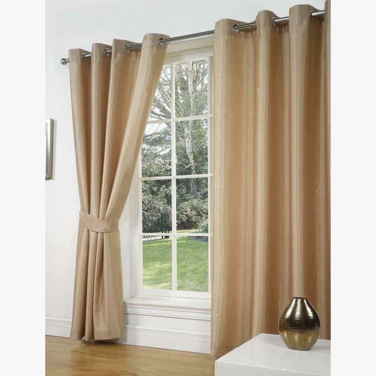 Faux Silk Curtains Pair Eyelet Ring Top Heading Lined With Tiebacks Set Latte - Latte / 108in / 66in
