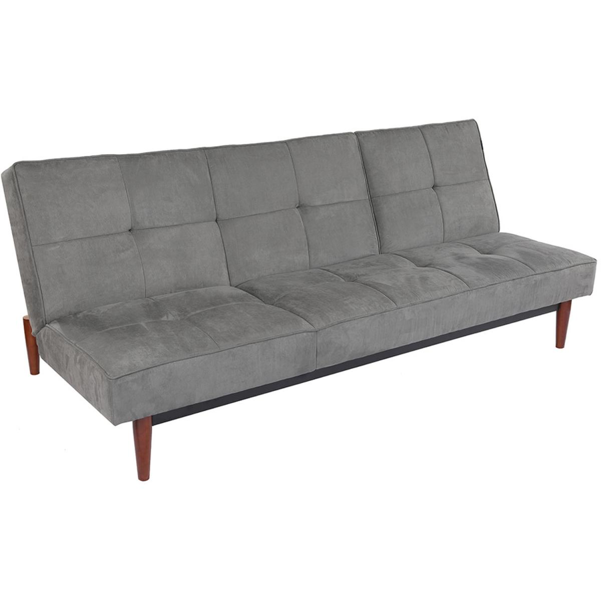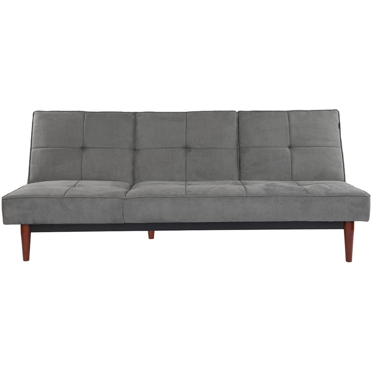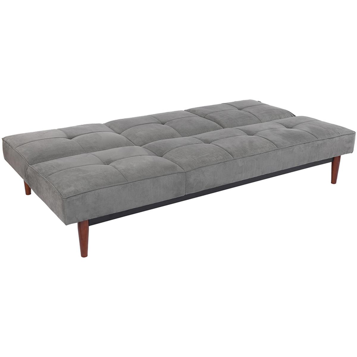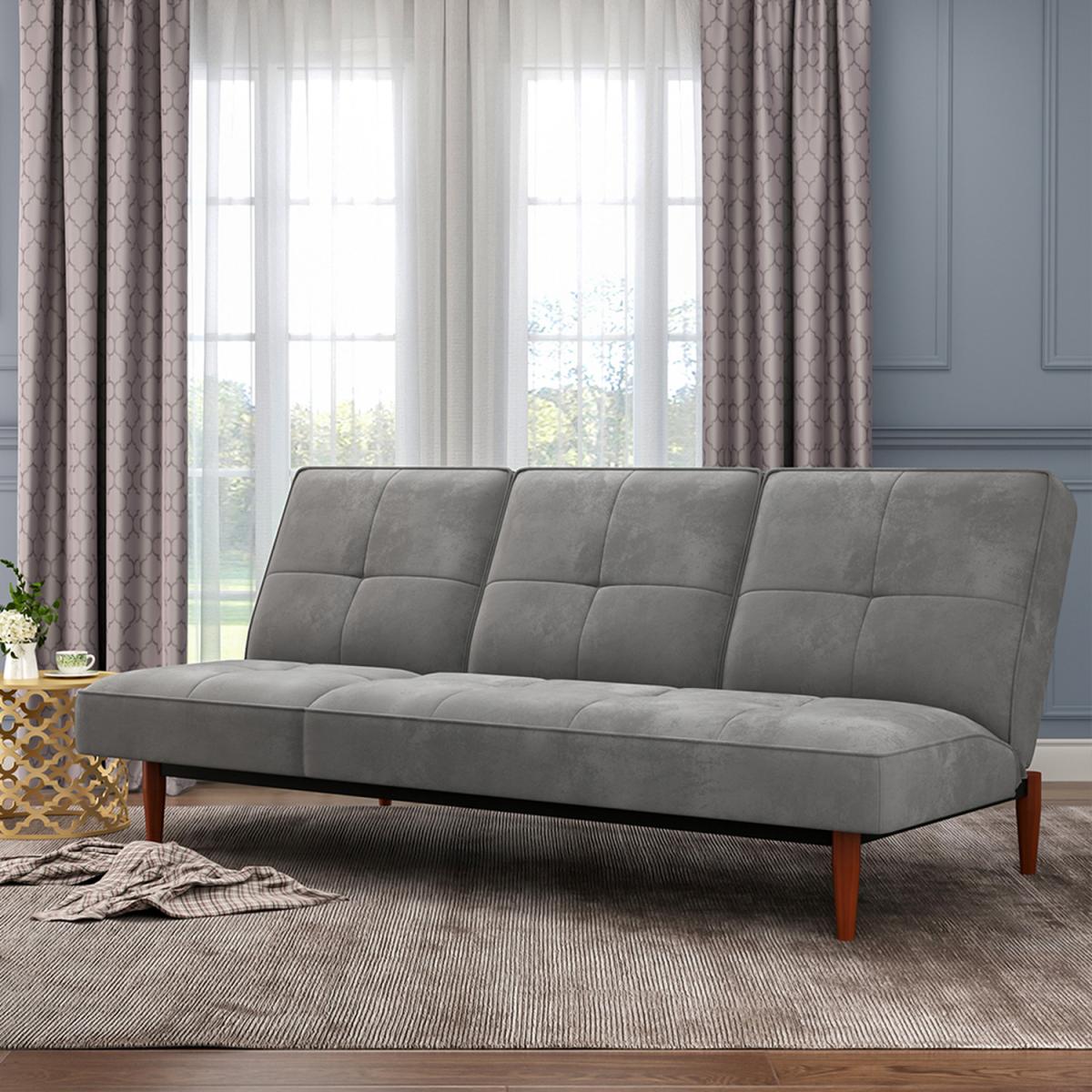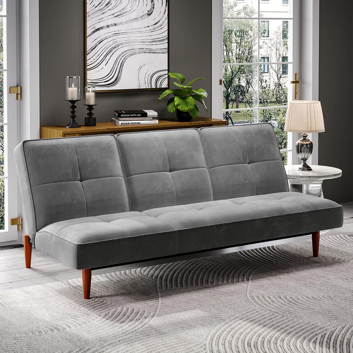 Faux Suede 3 Seater Upholstered Sofa Bed with Wood Legs - Grey
