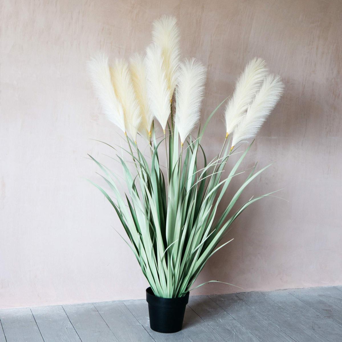 The feather-like tips of this faux potted wheatgrass lend a playful element. Its neutral colours mean you can pair it with just about any other flora or fauna. Approx. H142cm. Made of plastic.