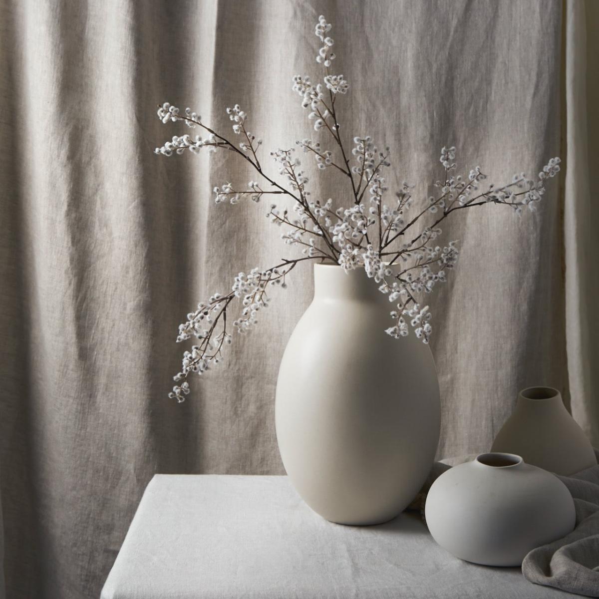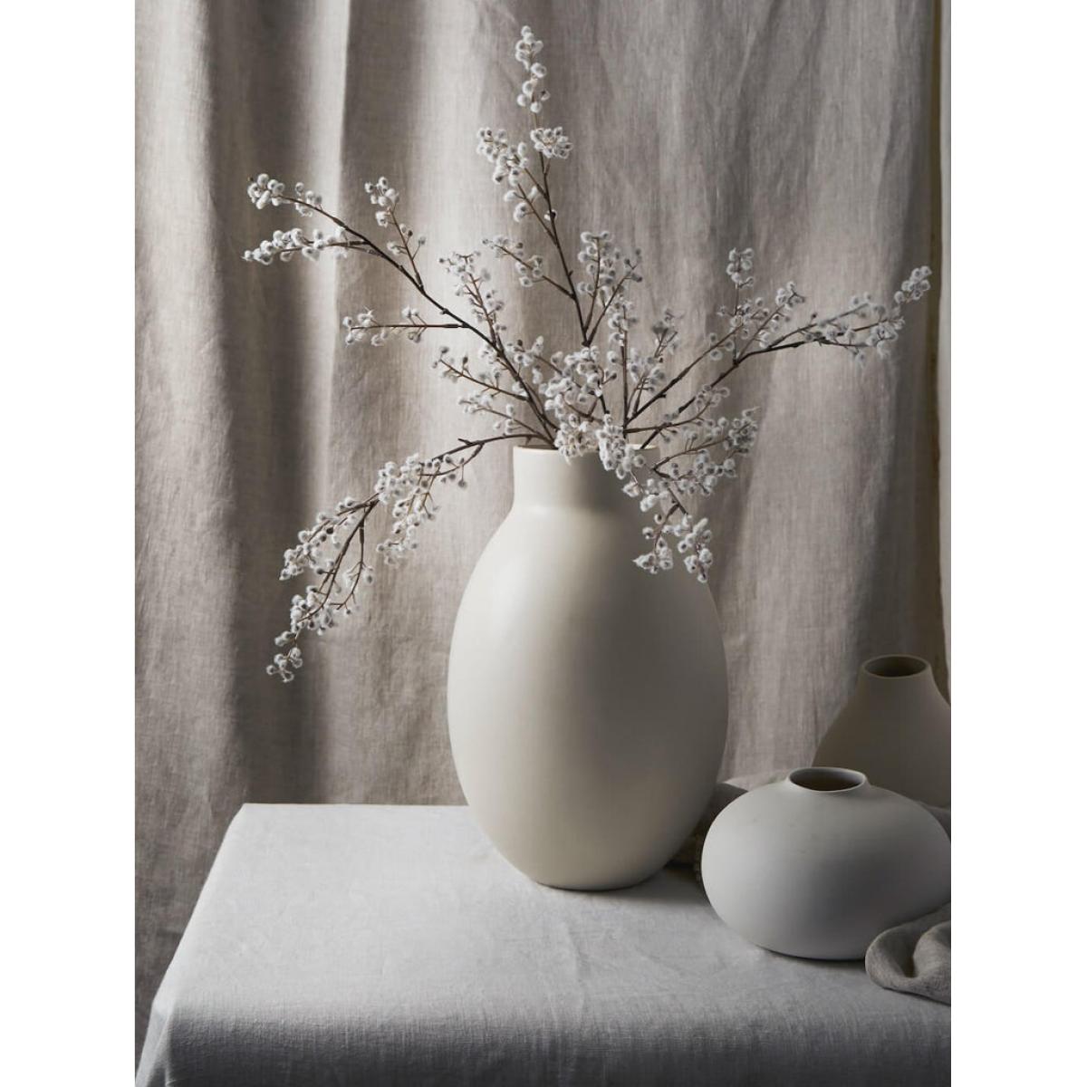 This faux stem of white willow has soft white buds on multiple branches. Ideal for styling in a bouquet or placing a few stems on their own in vase.