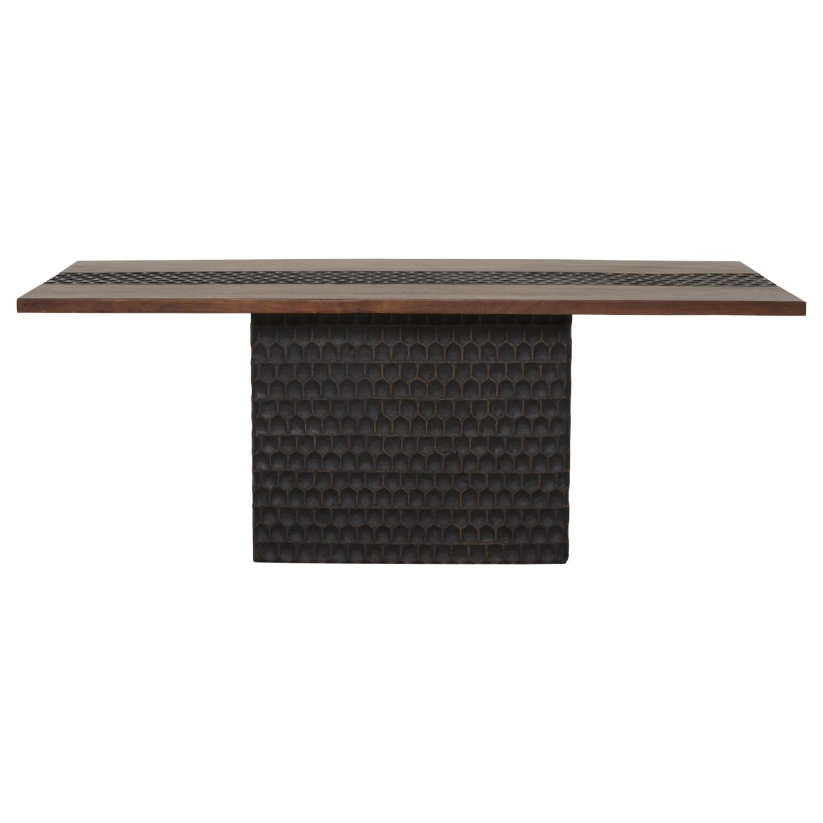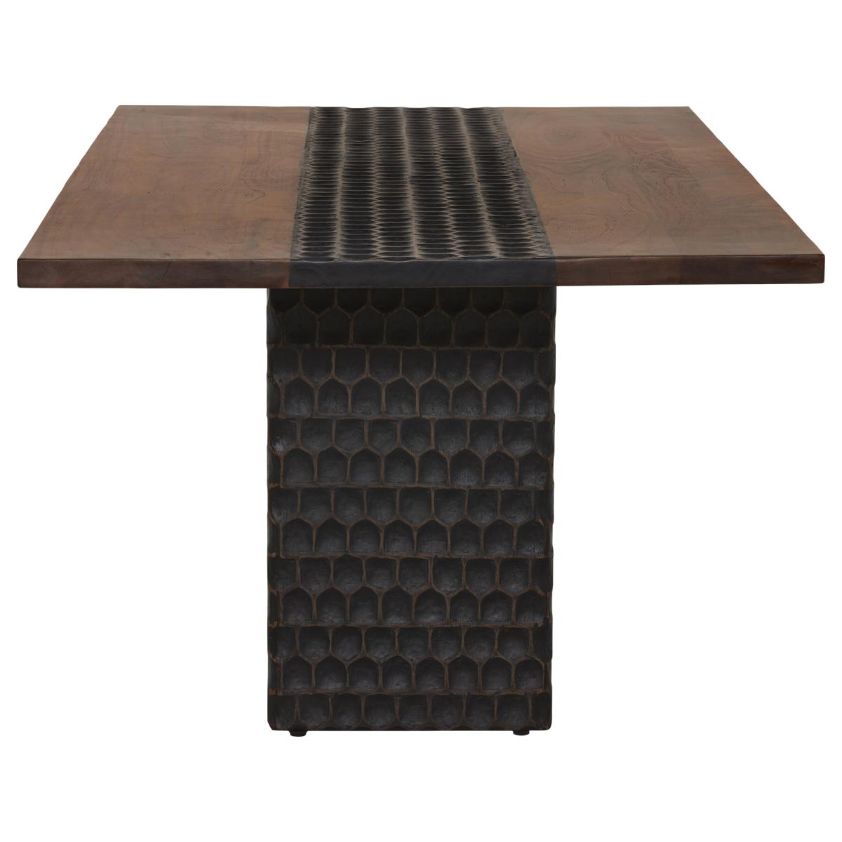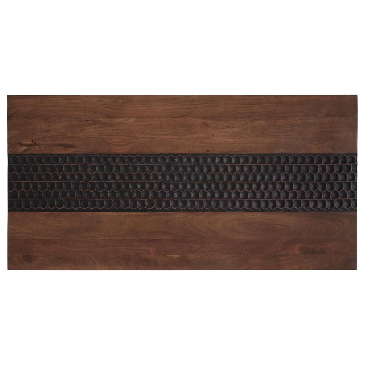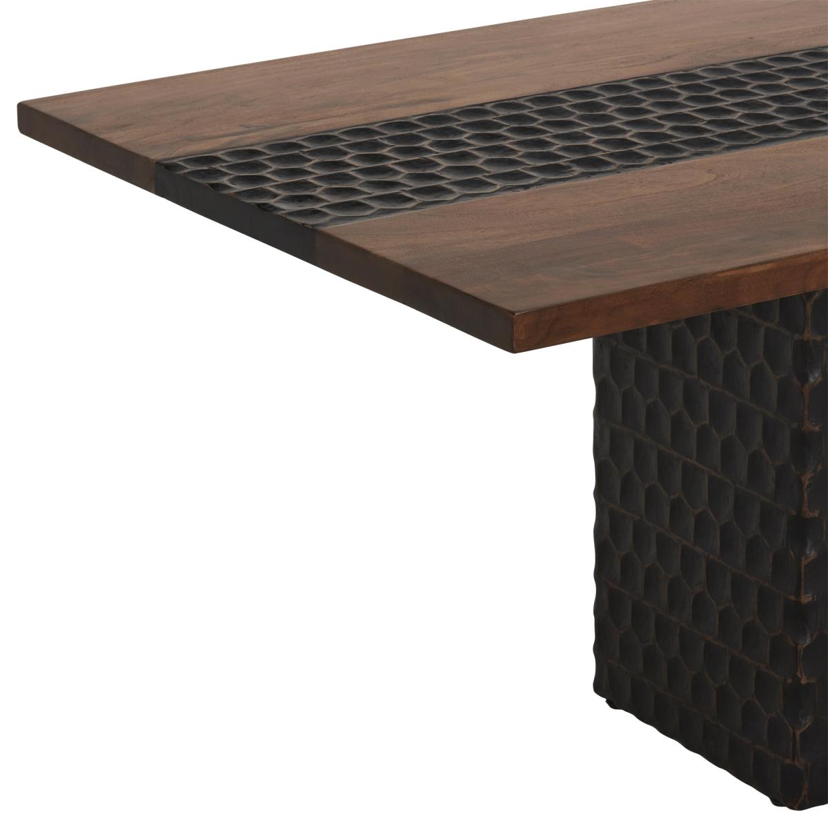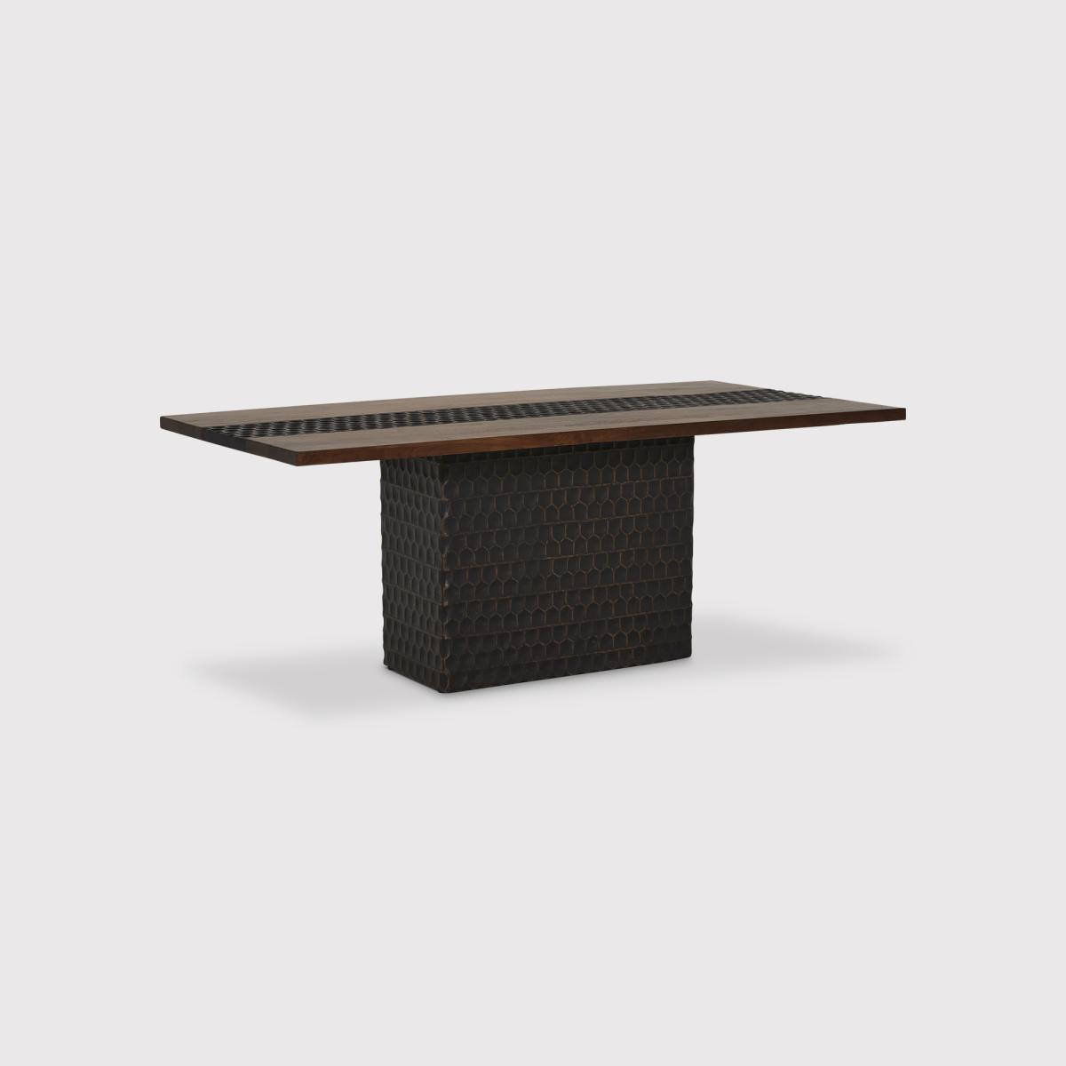 Oozing warmth and character, the wonderful Favi Dining Table has a magnetism like no other. The strong acacia raw walnut features a contemporary shape and dark traditional patterned detailing which gives it that vintage charm. This timeless piece will certainly live on for generations.