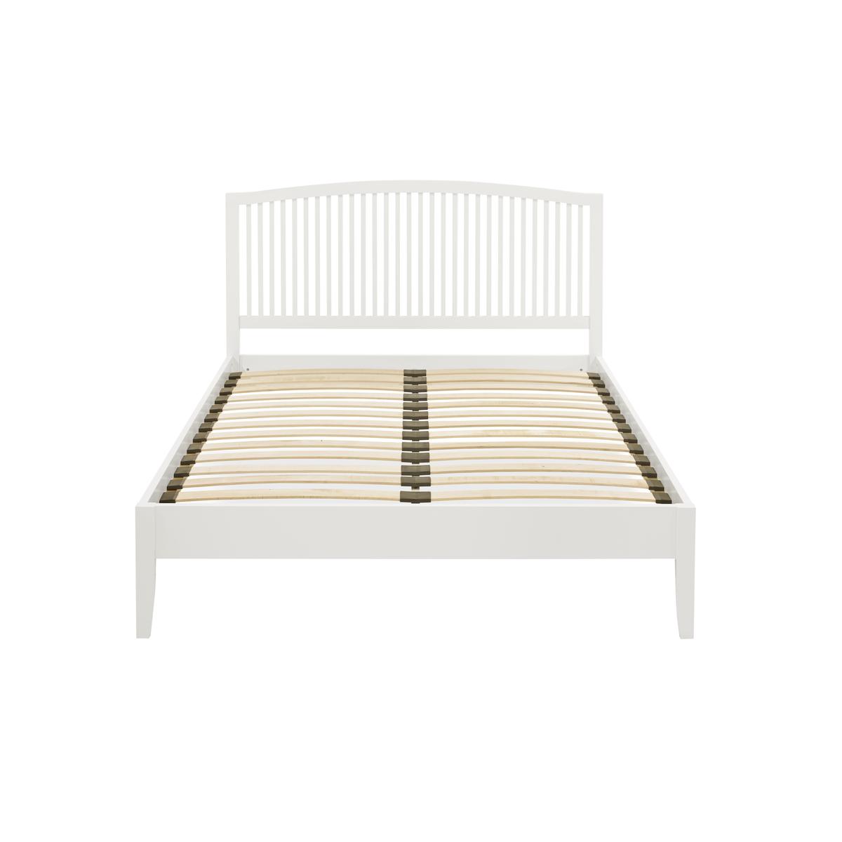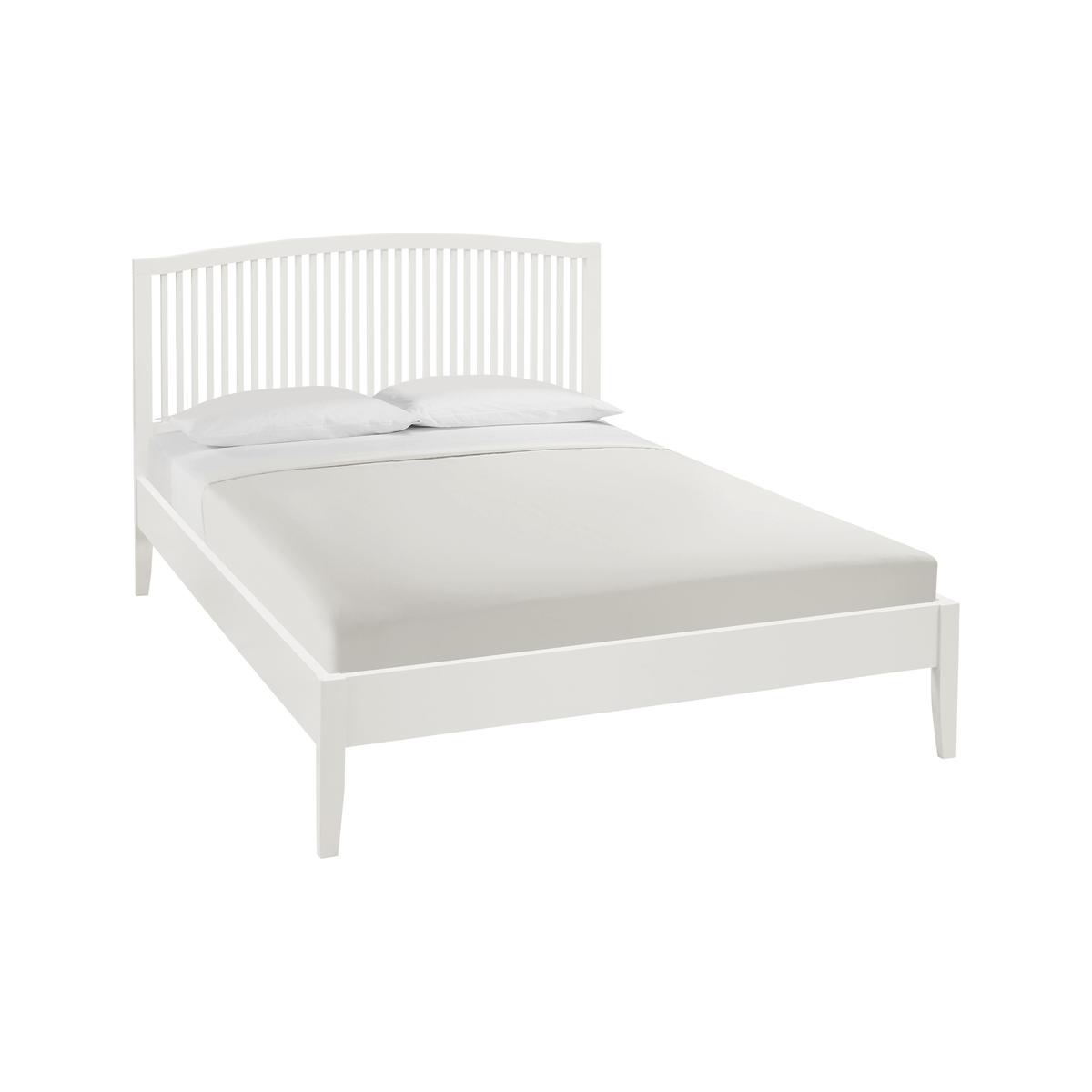 Fresh, clean and the perfect blend of classic and contemporary, the Faye bedroom collection is as practical as it is stylish – and all for a great value price. Each elegant piece is beautifully proportioned, while the compact design with plenty of storage suits smaller spaces. From the spacious triple wardrobe to the stylish bedframe with slatted headboard, this elegant bedroom furniture is finished in a crisply fresh, hard-wearing white coloured paint. Overhanging tops and pedestal bases are a timeless, classic touch yet there are convenient modern touches, such as the smooth Blum drawer runners. Both wooden and brushed stainless steel handles are provided on delivery, so you can try out both and decide which you prefer. The Faye bed frame has a cool and crisp painted finish, with a statement slatted headboard featuring a gently curved top. So you might be surprised at the great value price. Like the other pieces in the Faye bedroom collection, it blends the classic with the contemporary. This simply designed, beautiful bed frame has a hard-wearing painted finish that’s available in crisp white and cotton, a light grey. It comes in a wide choice of sizes to suit the standard mattress sizes. If you wish you can buy an under bed drawer, to maximise your storage space. The Faye bed frame is part of the elegant Faye bedroom collection, and is a Furniture Village online exclusive.
