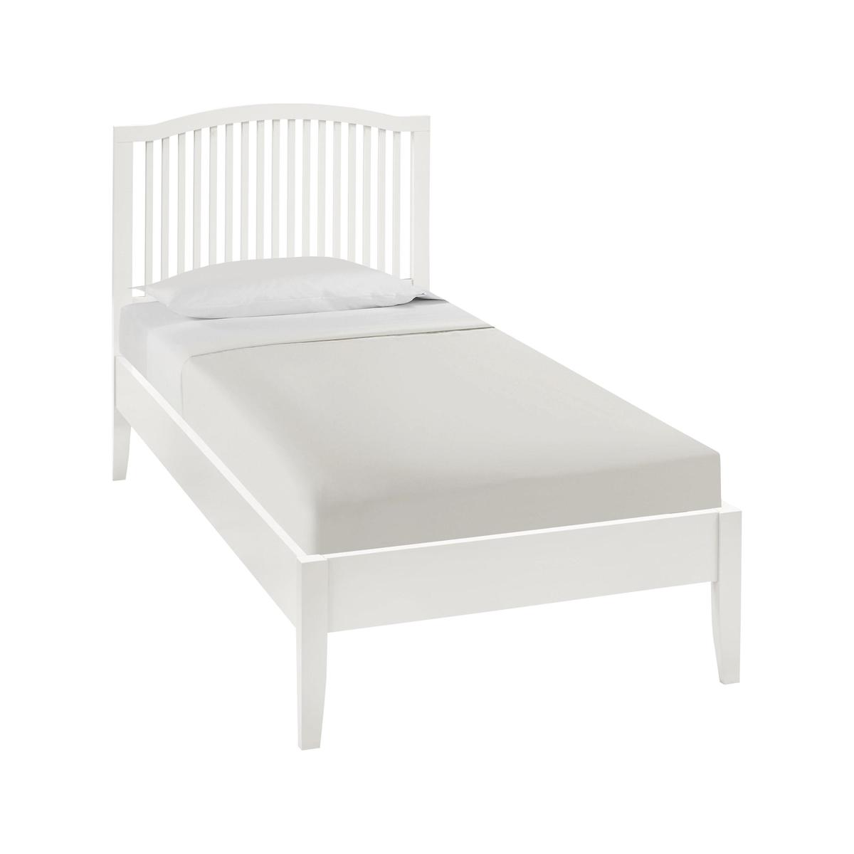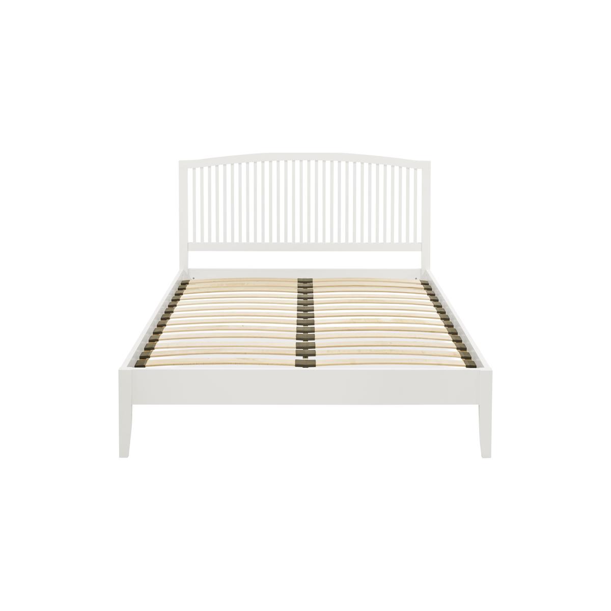 Fresh, clean and the perfect blend of classic and contemporary, the Faye bedroom collection is as practical as it is stylish – and all for a great value price. Each elegant piece is beautifully proportioned, while the compact design with plenty of storage suits smaller spaces. From the spacious triple wardrobe to the stylish bedframe with slatted headboard, this elegant bedroom furniture is finished in a crisply fresh, hard-wearing white coloured paint. Overhanging tops and pedestal bases are a timeless, classic touch yet there are convenient modern touches, such as the smooth Blum drawer runners. Both wooden and brushed stainless steel handles are provided on delivery, so you can try out both and decide which you prefer. The Faye bed frame has a cool and crisp painted finish, with a statement slatted headboard featuring a gently curved top. So you might be surprised at the great value price. Like the other pieces in the Faye bedroom collection, it blends the classic with the contemporary. This simply designed, beautiful bed frame has a hard-wearing painted finish that’s available in crisp white and cotton, a light grey. It comes in a wide choice of sizes to suit the standard mattress sizes. If you wish you can buy an under bed drawer, to maximise your storage space. The Faye bed frame is part of the elegant Faye bedroom collection, and is a Furniture Village online exclusive.