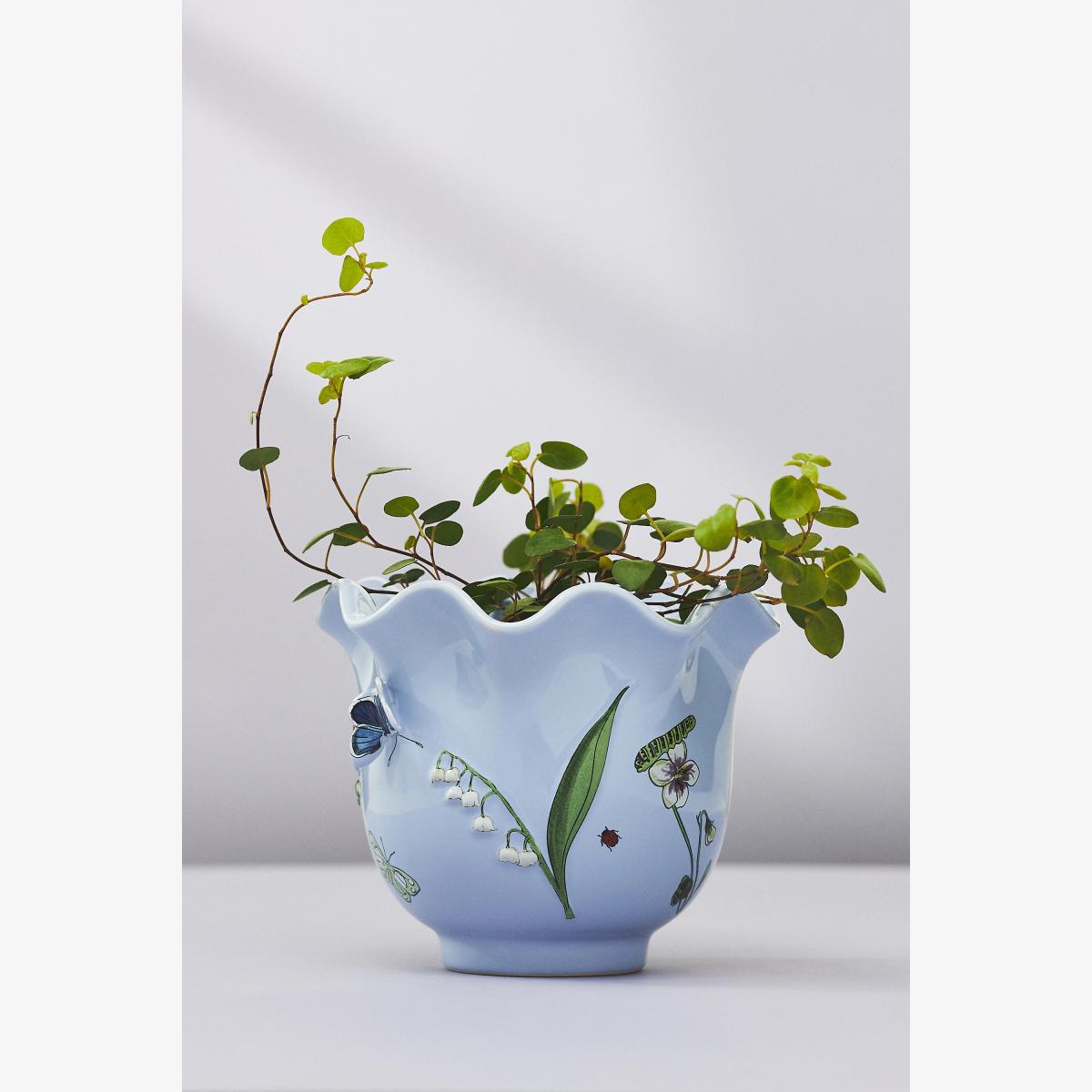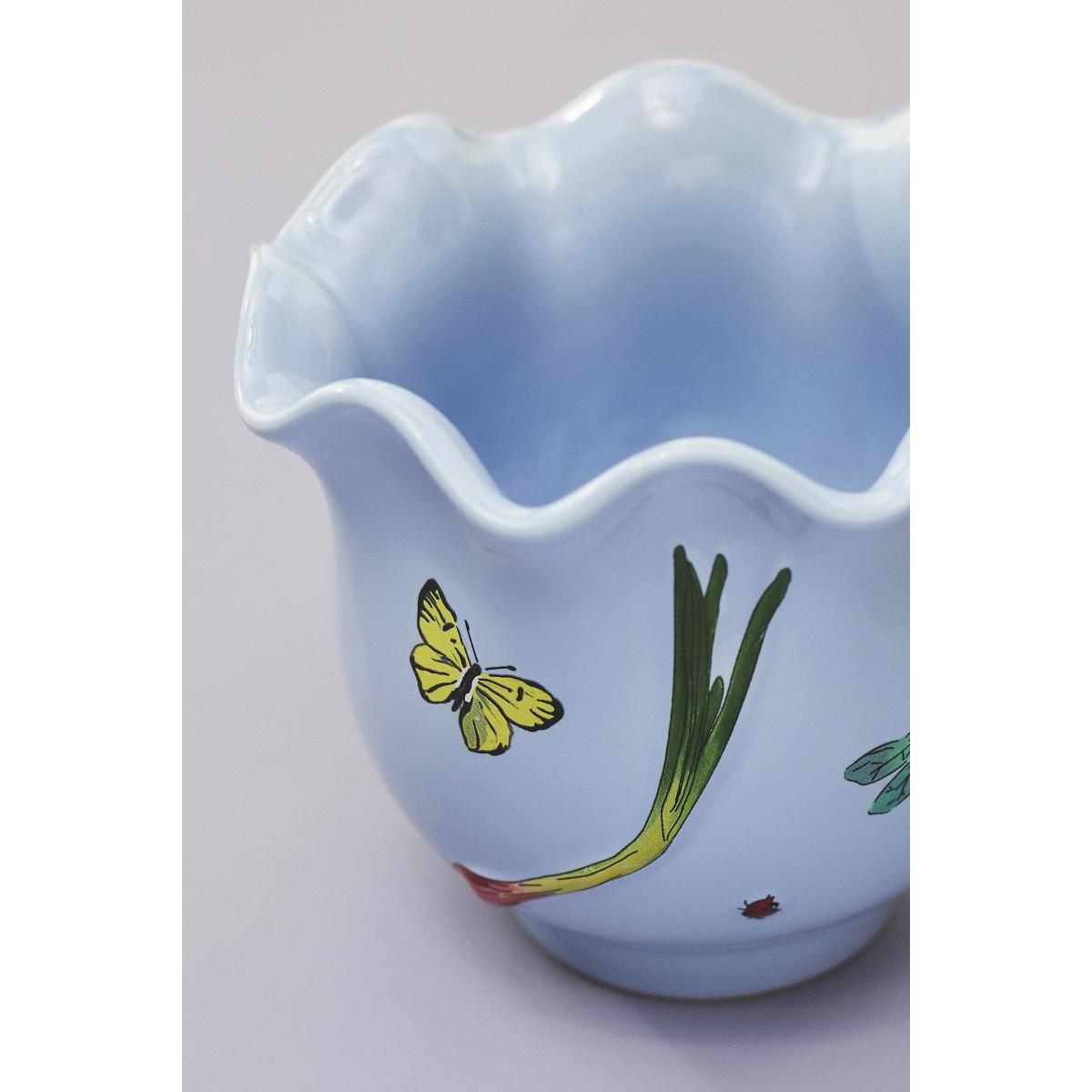 I love this glazed stoneware pot for its playful, organic shape and subtle colourway, which make it versatile in many interior schemes. It works particularly well in light, airy spaces like kitchens or bright plant-filled living rooms, adding a touch of charm without overpowering the surroundings. Practical styling tips include pairing it with lush, leafy greens or trailing plants to emphasise its curved form, and placing it on natural surfaces like wood or neutral-toned shelves to complement its blue glaze. It also makes a lovely statement piece on console tables, while its handmade feel pairs beautifully with ceramics and artisanal accessories for an eclectic, curated look.