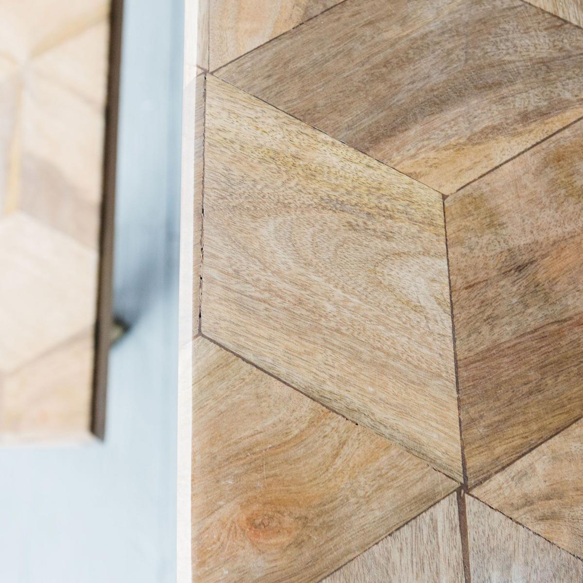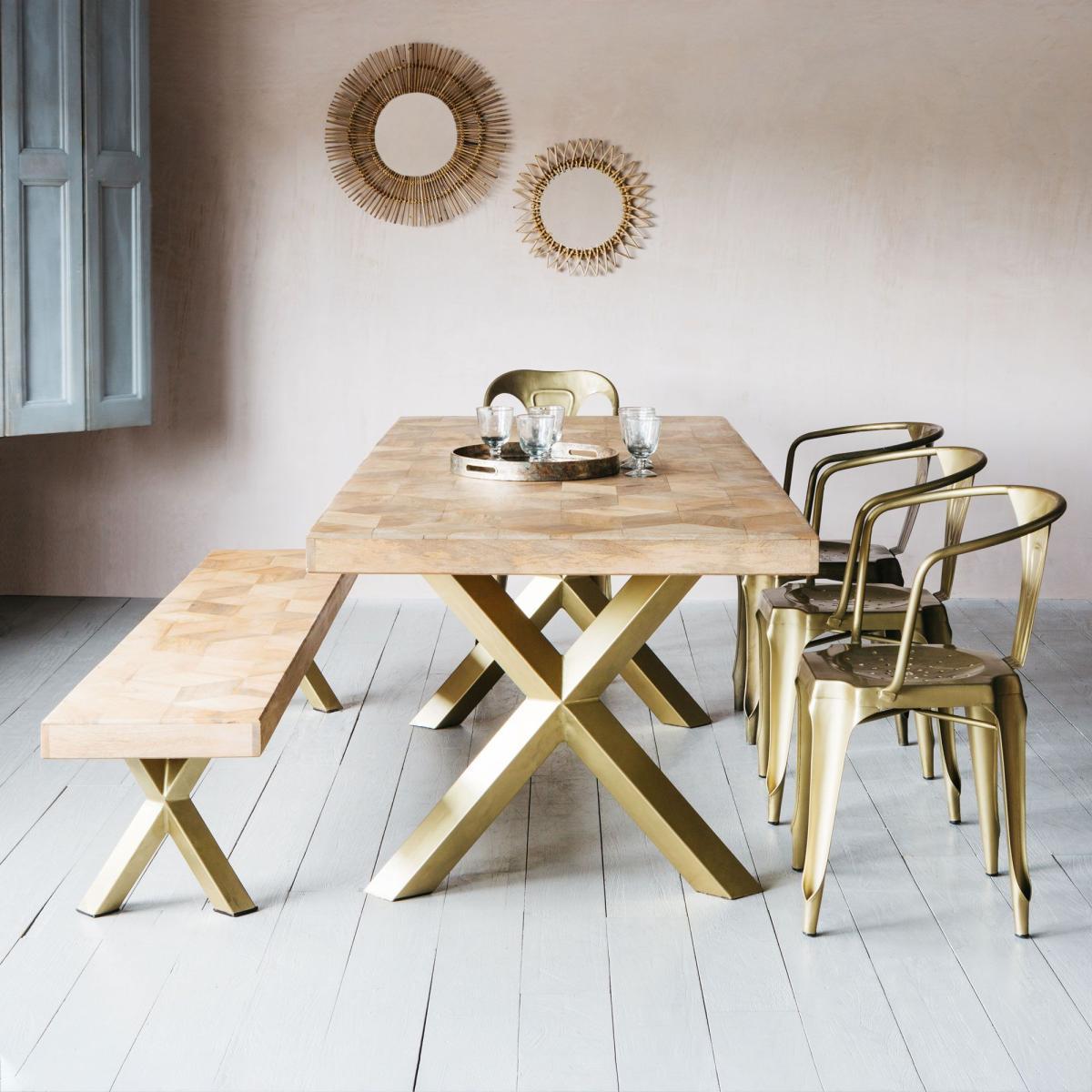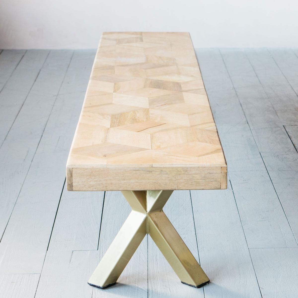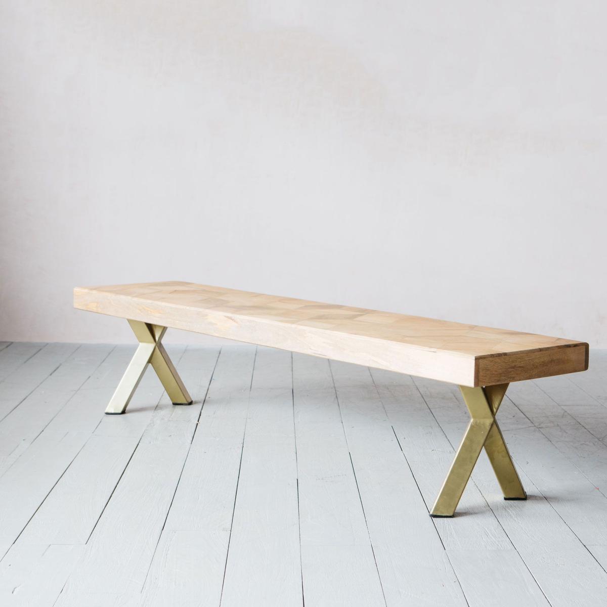 I love the Faye bench for its blend of rustic charm and modern craftsmanship, making it versatile for various interior styles. Its parquetry top adds visual interest, perfect for casual dining areas, kitchens, or even a ‘wow’ feature in a hallway or dressing room. It's ideal paired with a minimalist or Scandinavian palette, where its natural wood finish can really stand out, with cushions or throws adding comfort and colour when used as a seating option. Practical styling tips include layering it with textured rugs or placing it beneath a large mirror to create a welcoming entryway. Overall, it’s a functional piece that works well in both relaxed and contemporary settings, bringing warmth and character to your space.