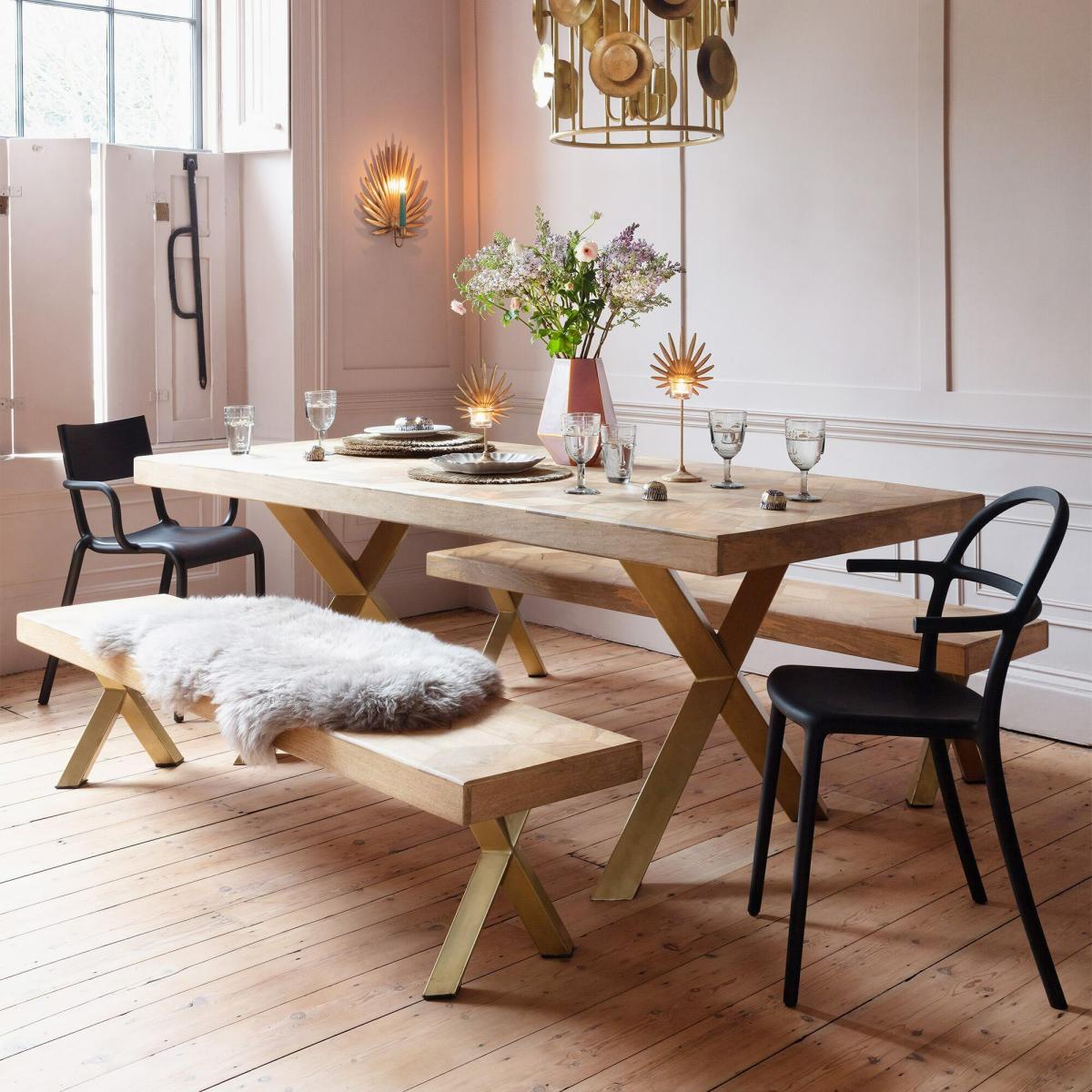 I love how the Faye parquetry dining table brings a sense of understated elegance with its intricate wood pattern and natural finish-it's a real statement piece that works well in both modern and traditional interiors. Its versatile design pairs beautifully with a range of chair styles, from sleek modern to vintage-inspired options. For styling, consider adding a simple runner or placing a colourful centrepiece to soften the look, and keep the surrounding decor minimal to let the table really stand out. It’s practical too, offering a solid surface that’s easy to maintain, making it an ideal centrepiece for everyday family meals or entertaining guests.