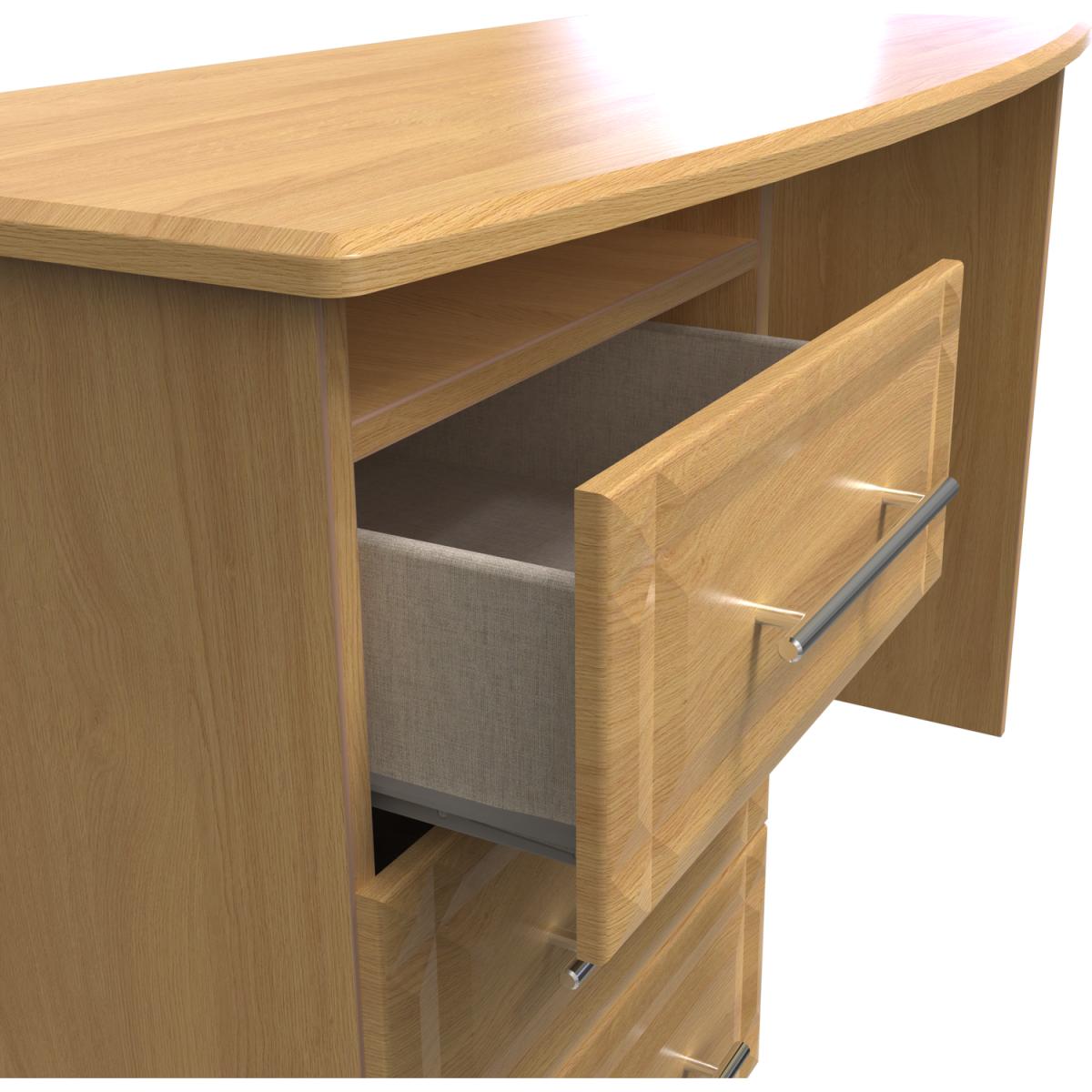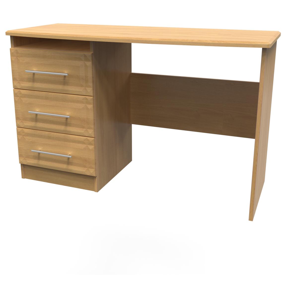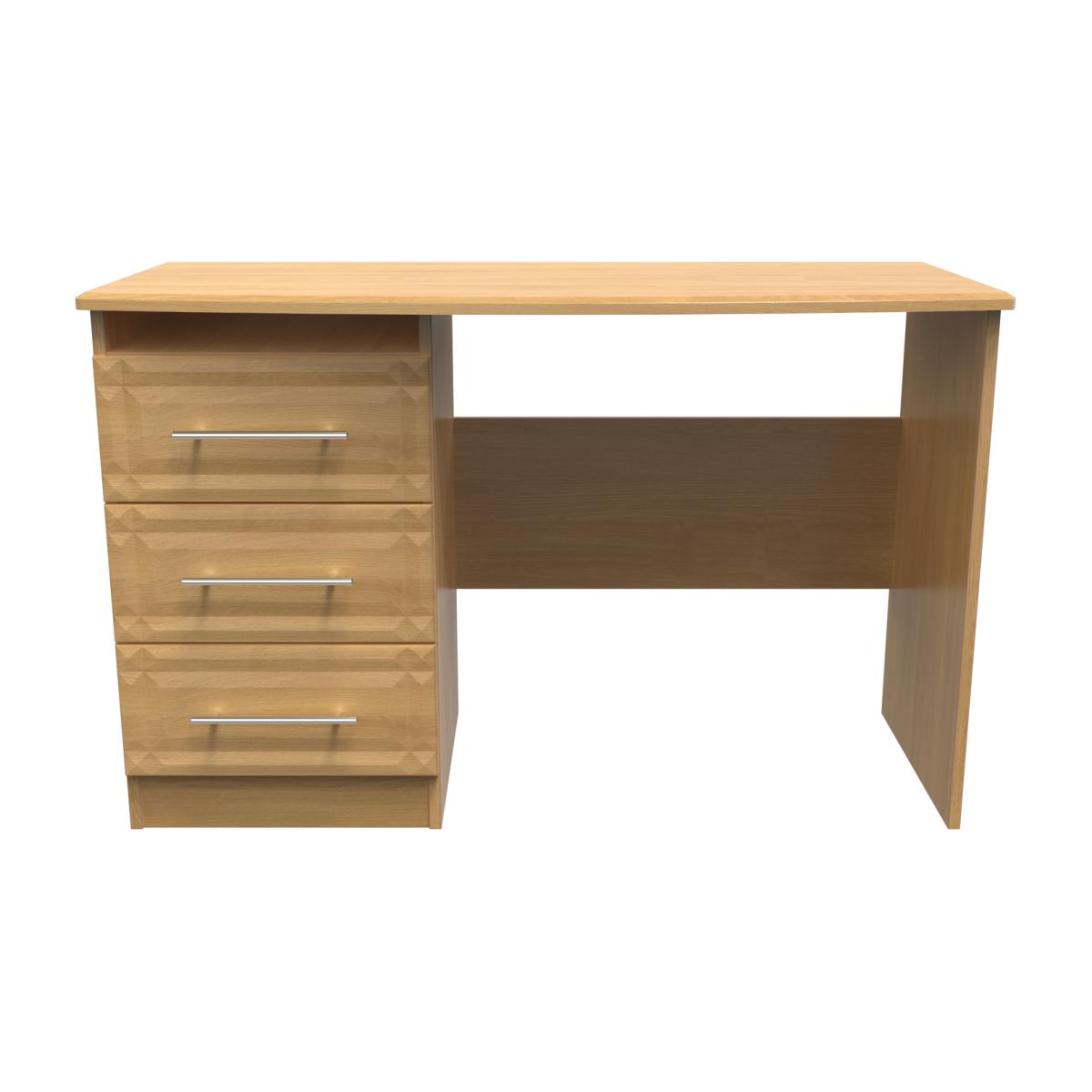 This practical 3 drawer narrow deskvanity is perfect for any bedroom or office. A matching stool and mirror (in 2 sizes) are also available. This range will bring a tough of class to any room. With distinctive carved fronts and elegant gold T-Bar metal handles. Available in a range scratch reistant colours and finishes. All our furniture is made in the United Kingdom, to the highest quality. It is delivered direct to your location of choice by one of our two man delivery teams, and come full assembled (although legs may be removed to prevent damage in transit).