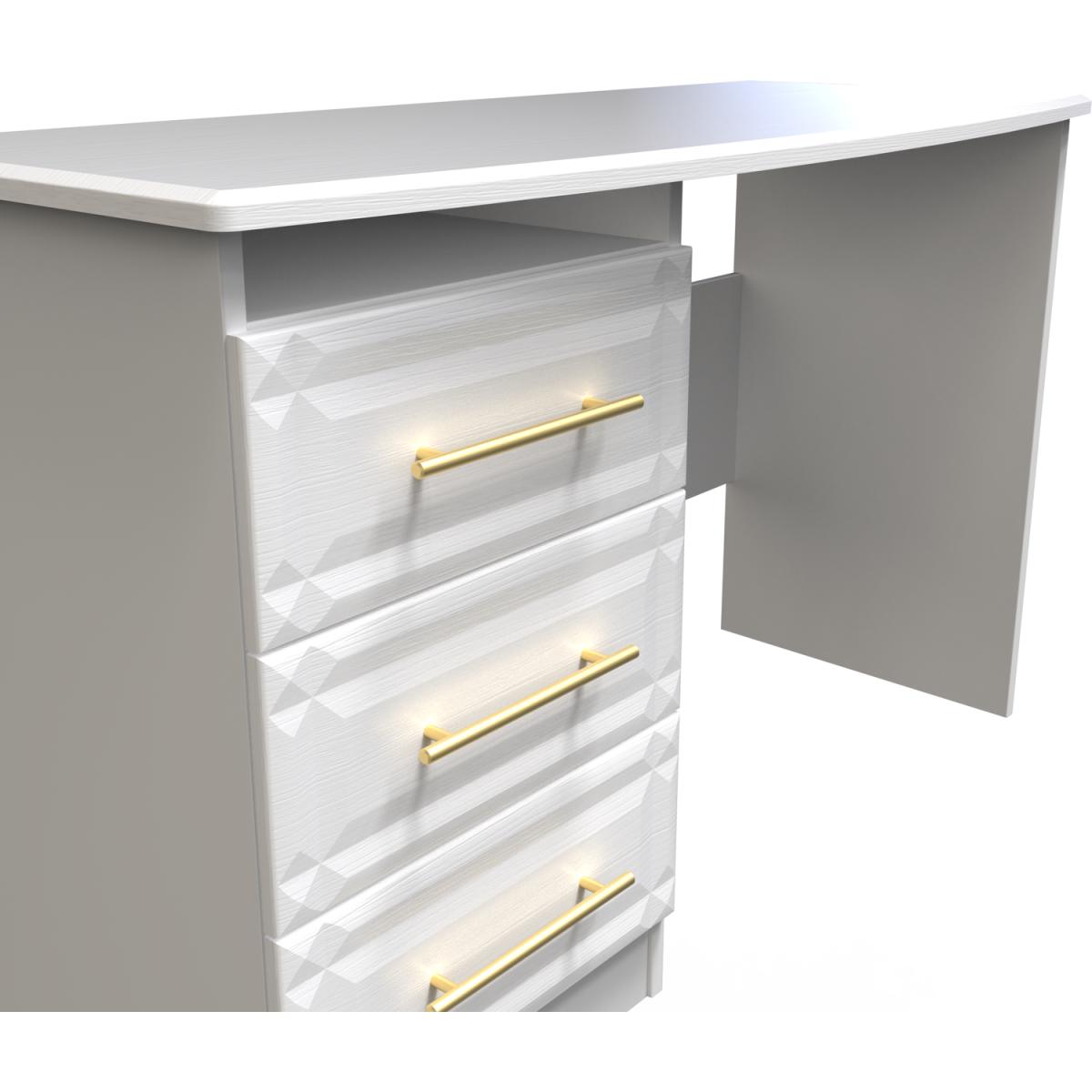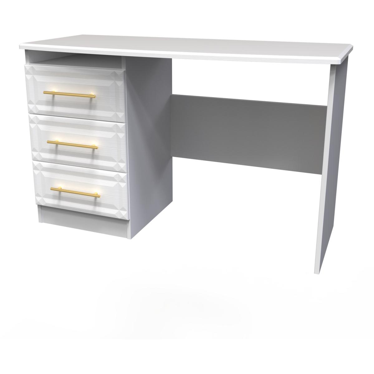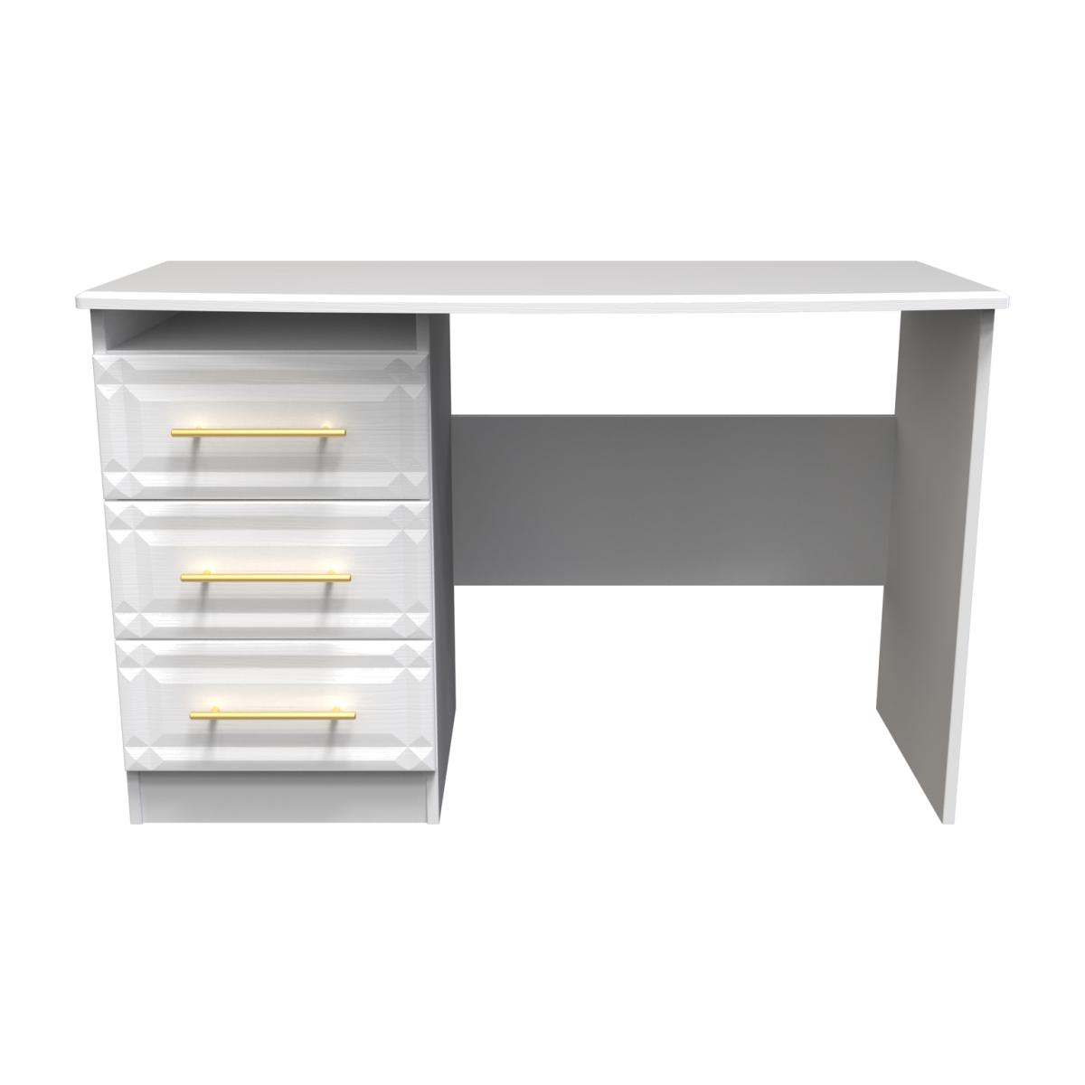 This practical 3 drawer narrow deskvanity is perfect for any bedroom or office. A matching stool and mirror (in 2 sizes) are also available. This range will bring a tough of class to any room. With distinctive carved fronts and elegant gold T-Bar metal handles. Available in a range scratch reistant colours and finishes. All our furniture is made in the United Kingdom, to the highest quality. It is delivered direct to your location of choice by one of our two man delivery teams, and come full assembled (although legs may be removed to prevent damage in transit).