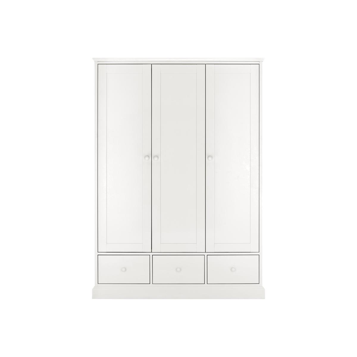 Fresh, clean and the perfect blend of classic and contemporary, the Faye bedroom collection is as practical as it is stylish – and all for a great value price. Each elegant piece is beautifully proportioned, while the compact design with plenty of storage suits smaller spaces. From the spacious triple wardrobe to the stylish bedframe with slatted headboard, this elegant bedroom furniture is finished in a crisply fresh, hard-wearing white coloured paint. Overhanging tops and pedestal bases are a timeless, classic touch yet there are convenient modern touches, such as the smooth Blum drawer runners. Both wooden and brushed stainless steel handles are provided on delivery, so you can try out both and decide which you prefer. The Faye triple wardrobe is beautifully designed – and provides so much storage you’ll wonder how you managed without it. This large wardrobe’s overhanging top, panelled doors and pedestal base are timeless classic features, but the durable painted finish makes it feel fresh and contemporary. Choose either clean and crisp white or fashionable cotton, a lovely light grey colour. It has three doors and three drawers below with smooth Blum drawer runners. Wooden and brushed stainless steel handles are provided on delivery, so you can try out both and decide which you prefer. Inside this spacious wardrobe you’ll find one fixed double shelf and fixed double hanging rail, and in the third section a fixed single hanging rail with four adjustable shelves – so you can choose either hanging or shelf space or a combination of the two. The Faye triple wardrobe is part of the elegant, great value Faye bedroom collection, and is a Furniture Village online exclusive. WARNING!. Furniture can tip over unexpectedly and cause injury. This item shall be fixed to a wall using the anti-tip kit provided with the furniture. Be sure to use the correct wall fixings suitable for the walls in your home.